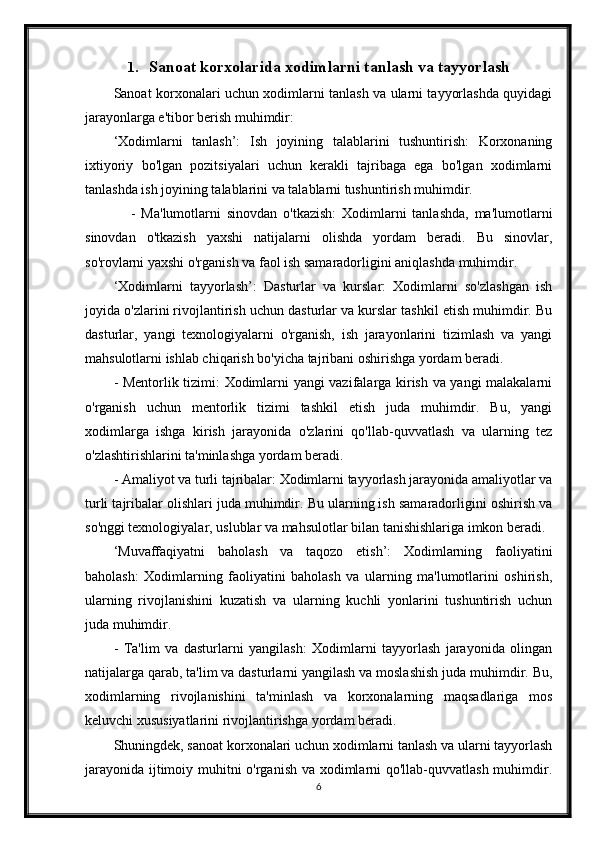 1.2 Xodimlarni sanoat sohasida ta'lim va tayyorlashning muhimligi.