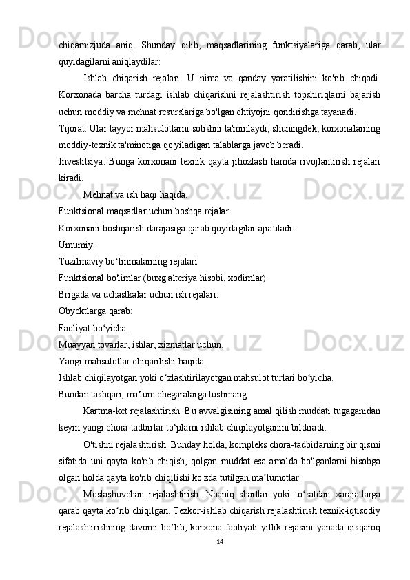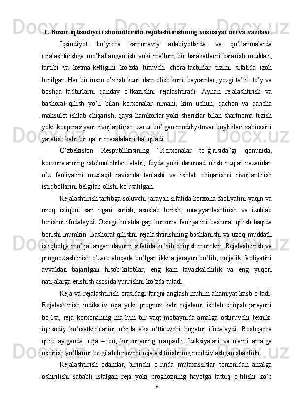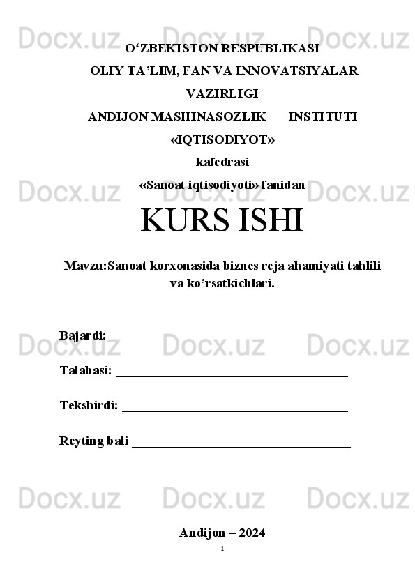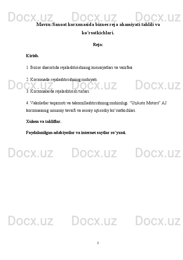 Sanoat korxonasida biznes reja ahamiyati tahlili va ko’rsatkichlari