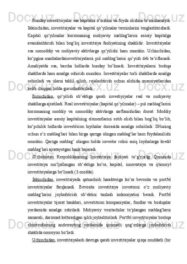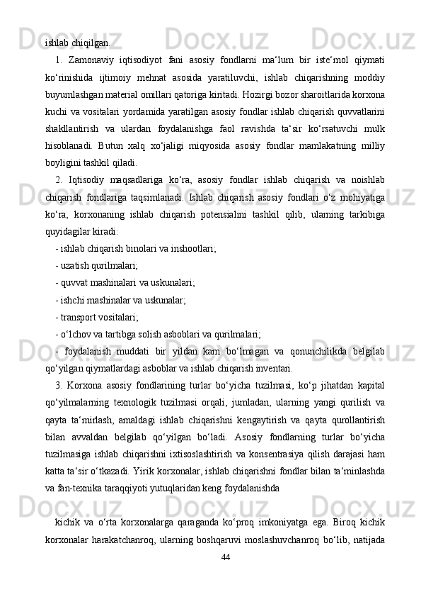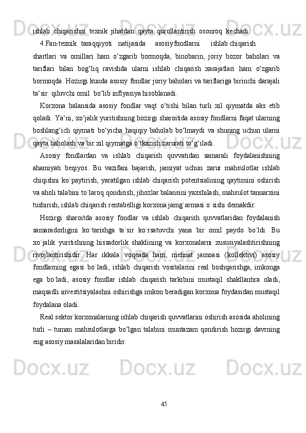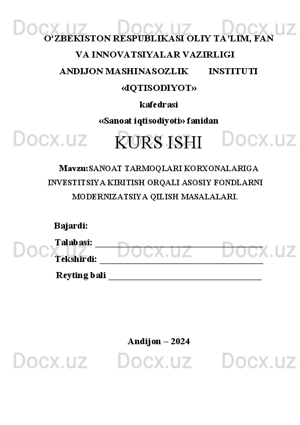 Sanoat tarmoqlari korxonalariga investitsiya kiritish orqali asosiy fondlarni modernizatsiya qilish masalalari
