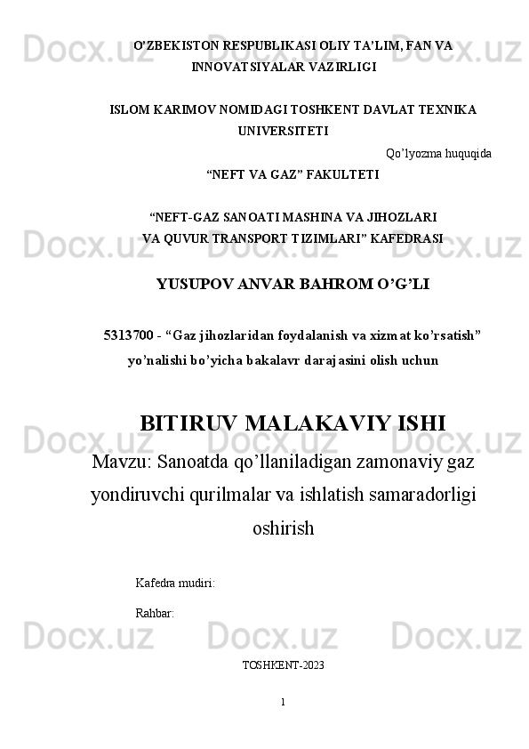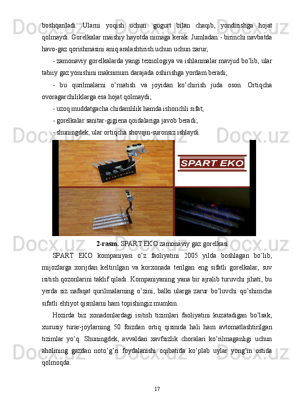 Sanoatda qo’llaniladigan zamonaviy gaz yondiruvchi qurilmalar va ishlatish samaradorligi oshirish