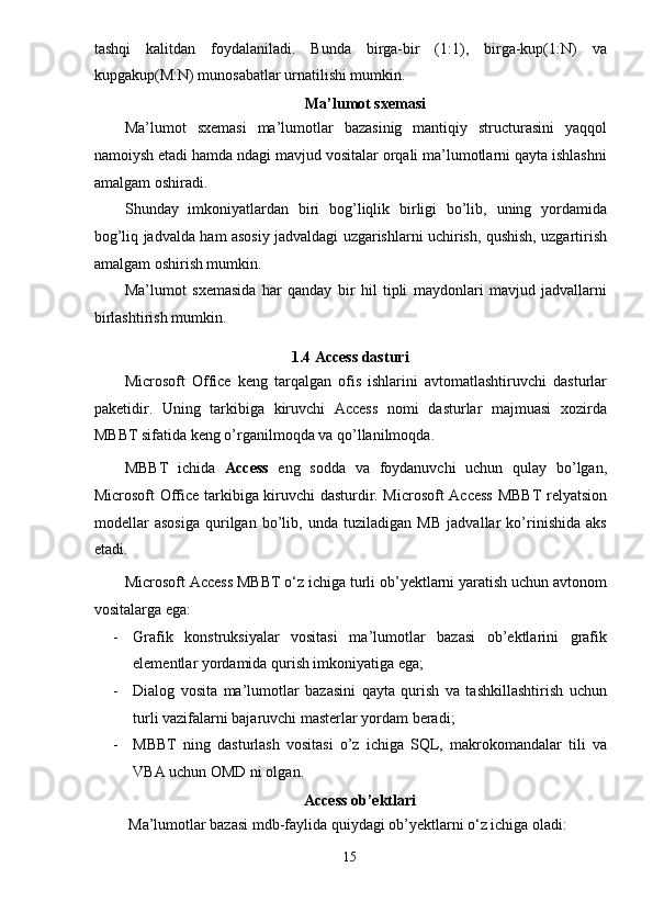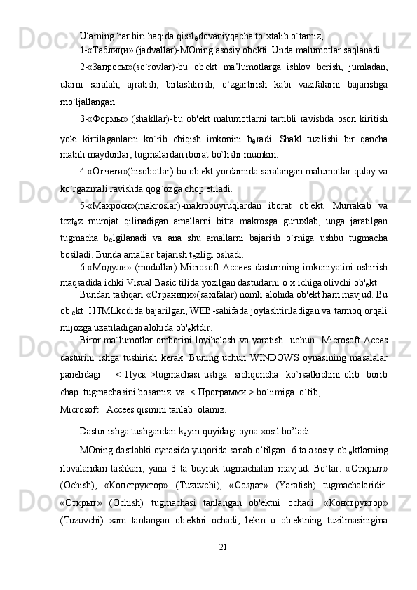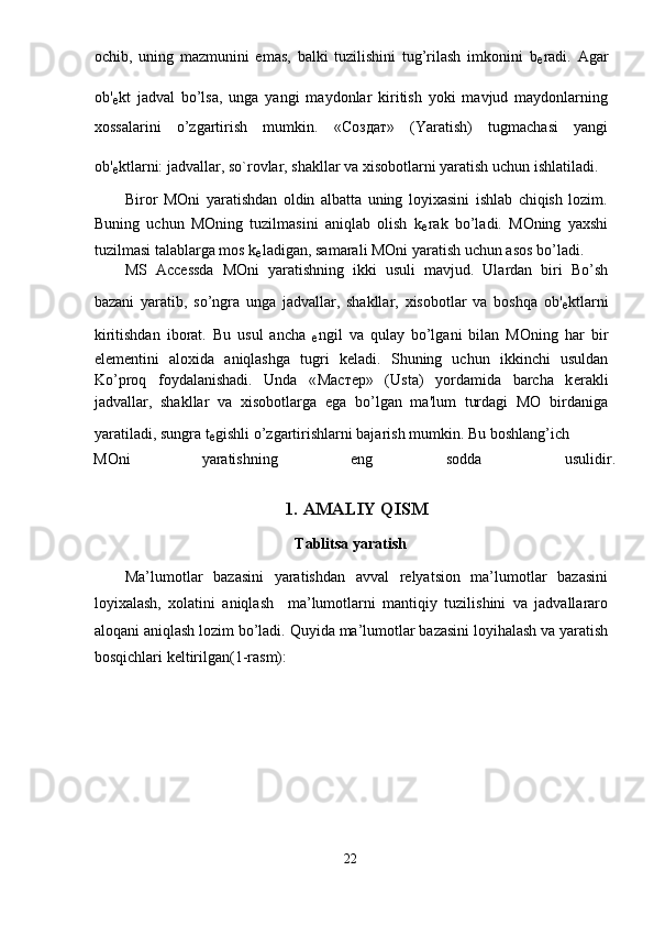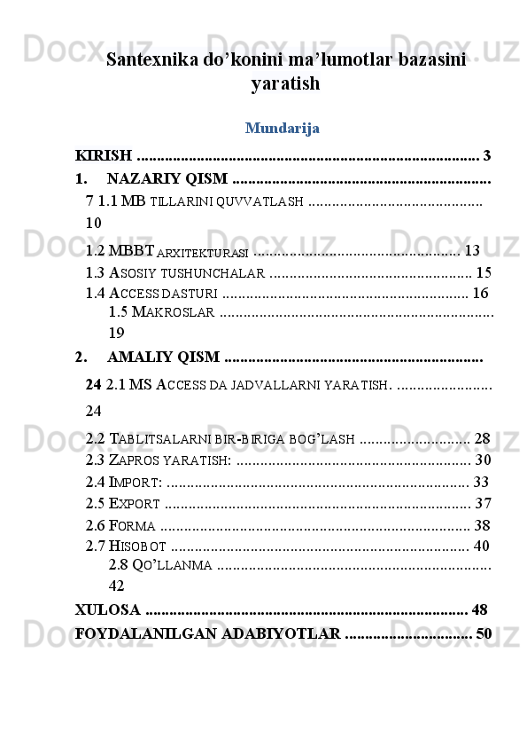 Santexnika do’konini ma’lumotlar bazasini yaratish