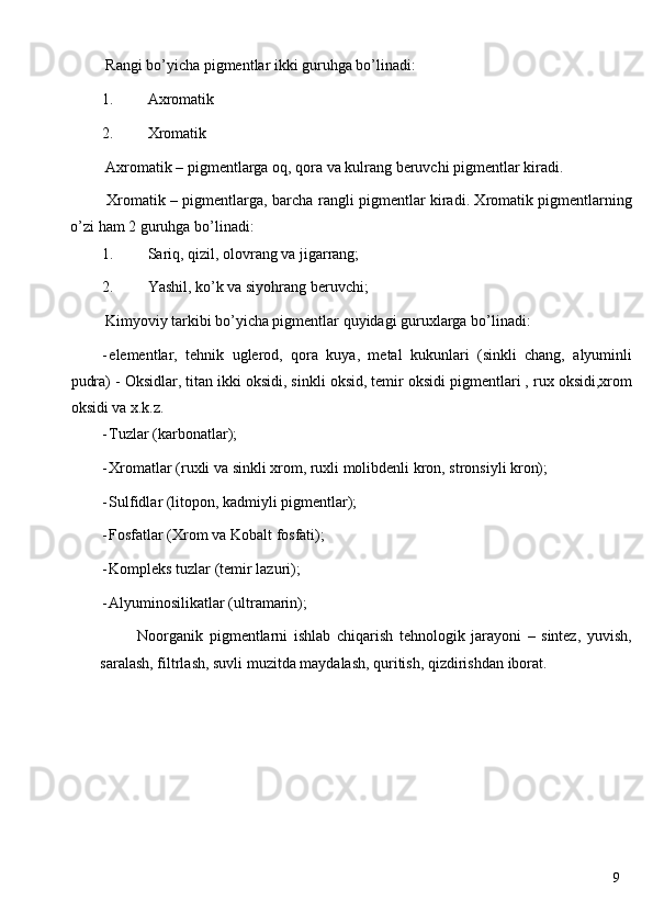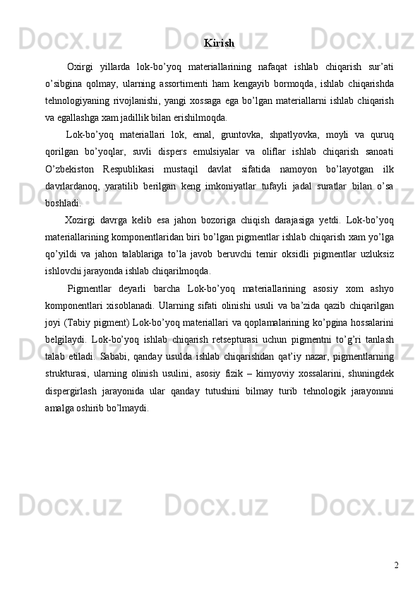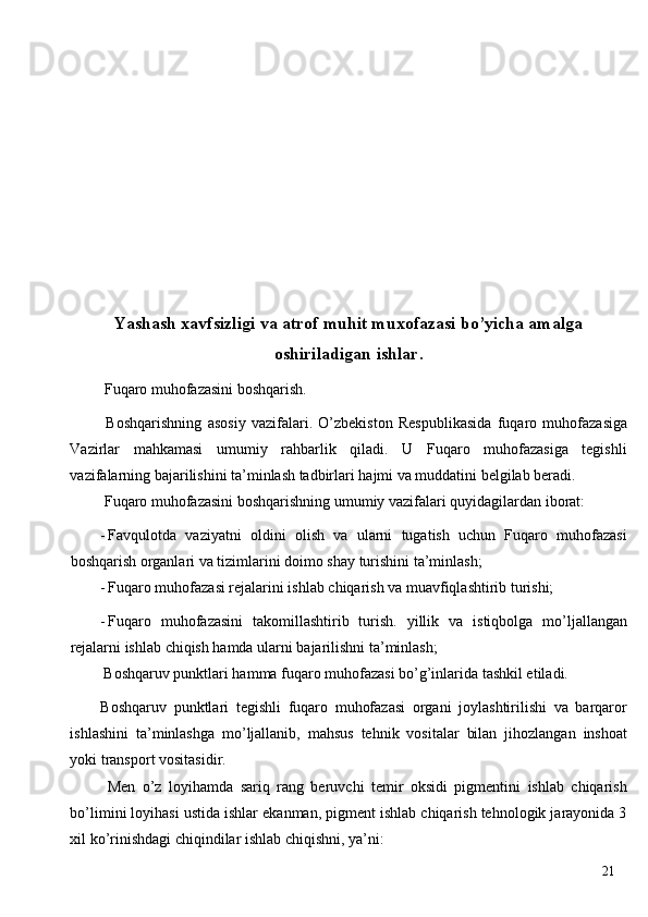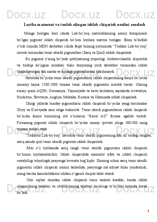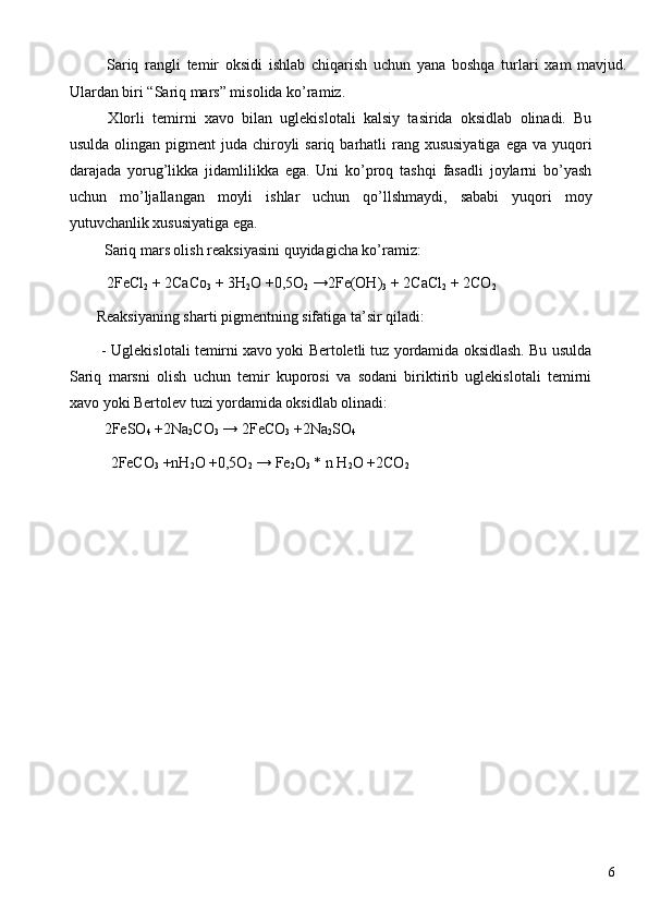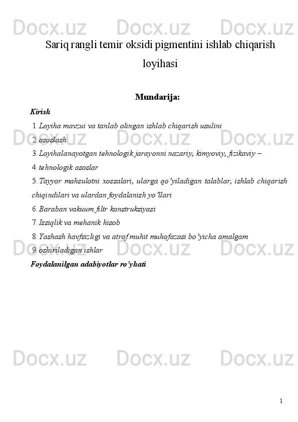 Sariq rangli temir oksidi pigmentini ishlab chiqarish loyihasi