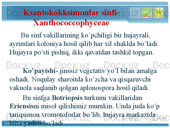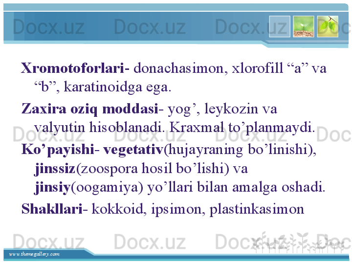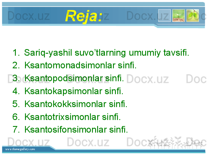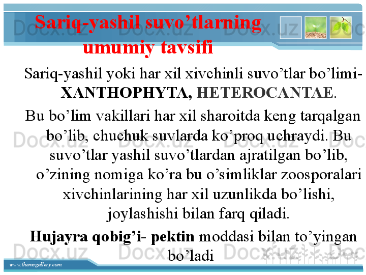 Sariq-yashil suvo’tlar yoki har xil xivchinlilar bo’limi