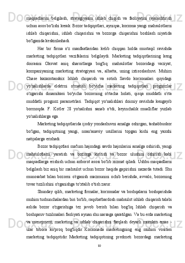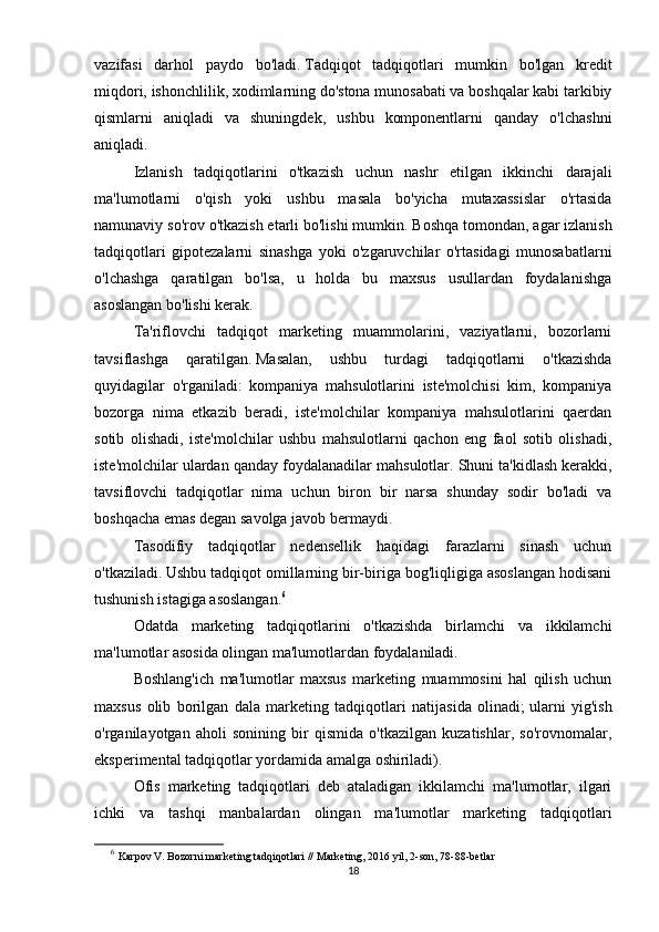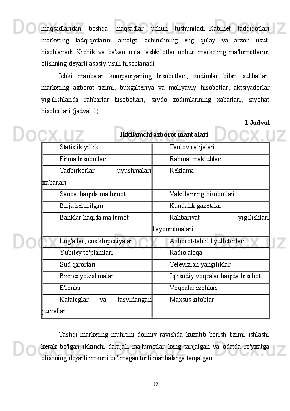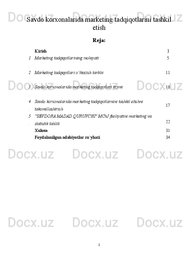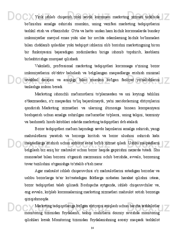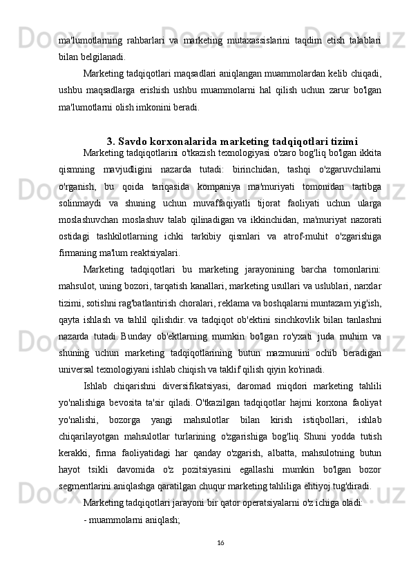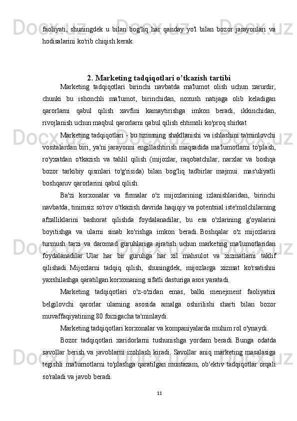Savdo korxonalarida marketing tadqiqotlarini tashkil etish