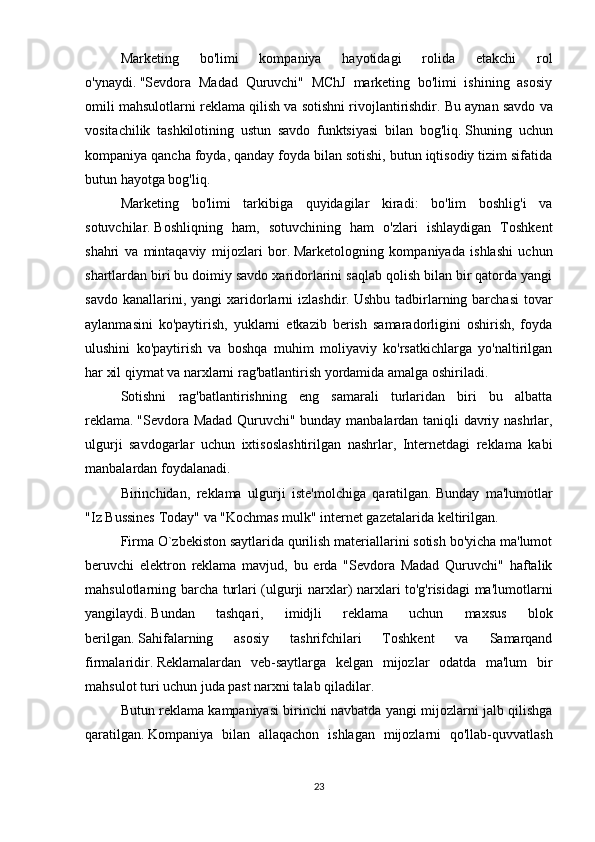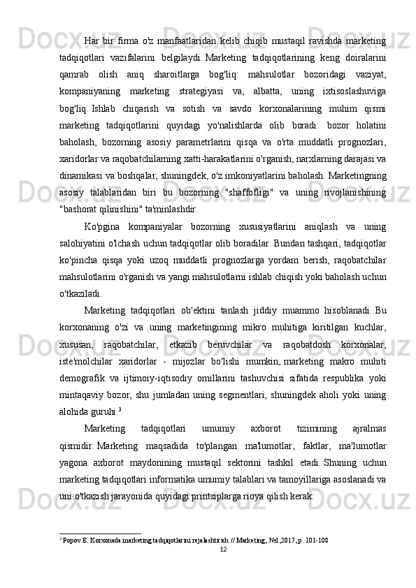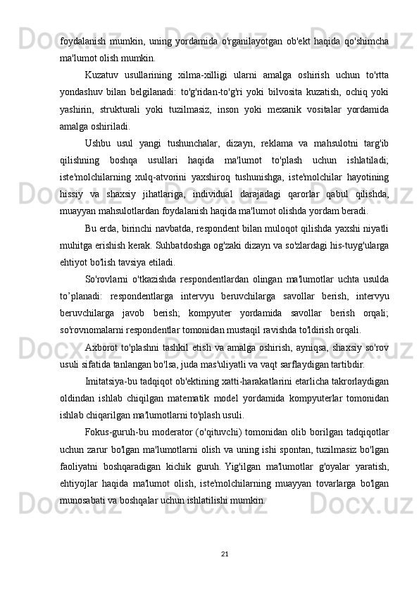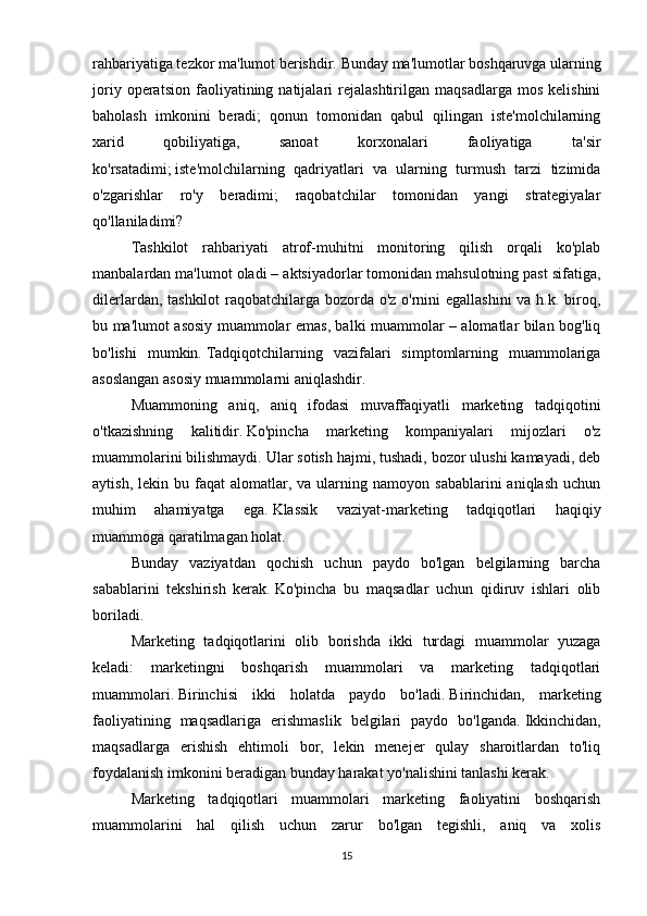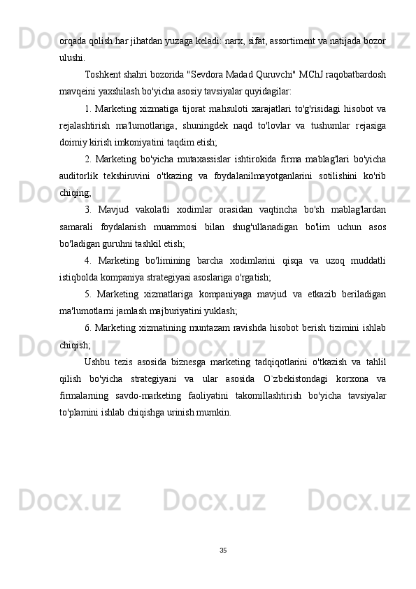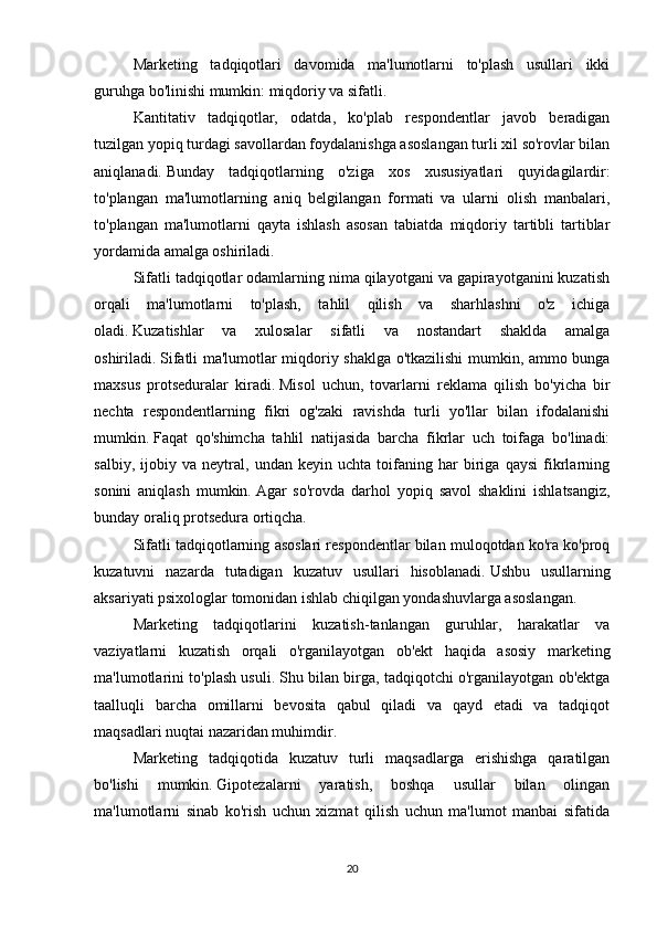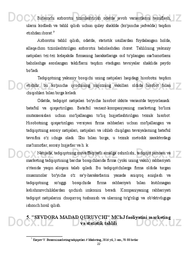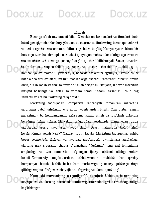 Savdo korxonalarida marketing tadqiqotlarini tashkil etish