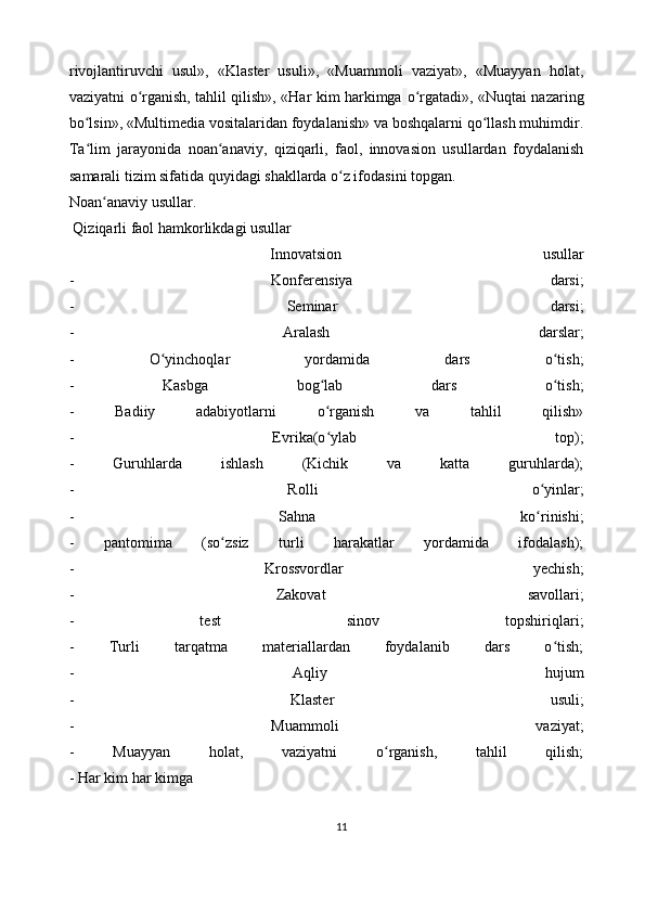 1.1. Savod oʻrgatishda mustaqil ishlarni tashkil qilish usullari ........................8-13