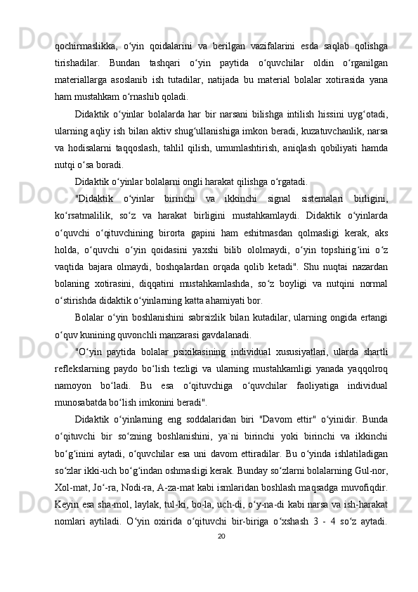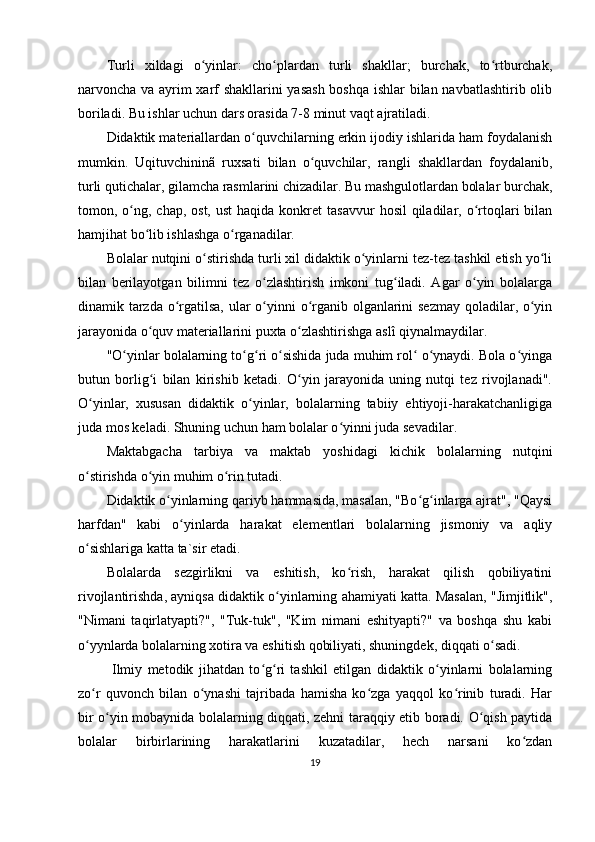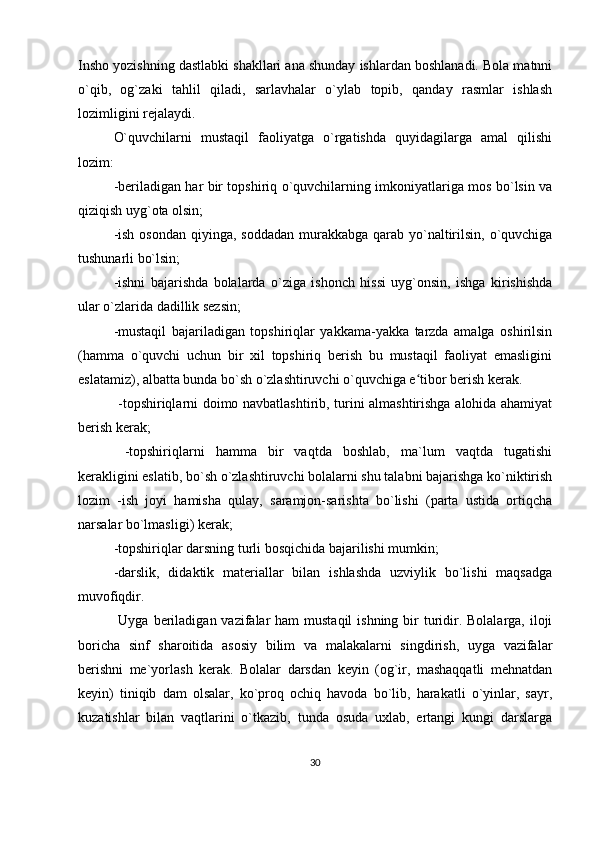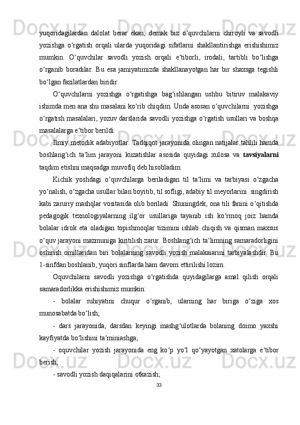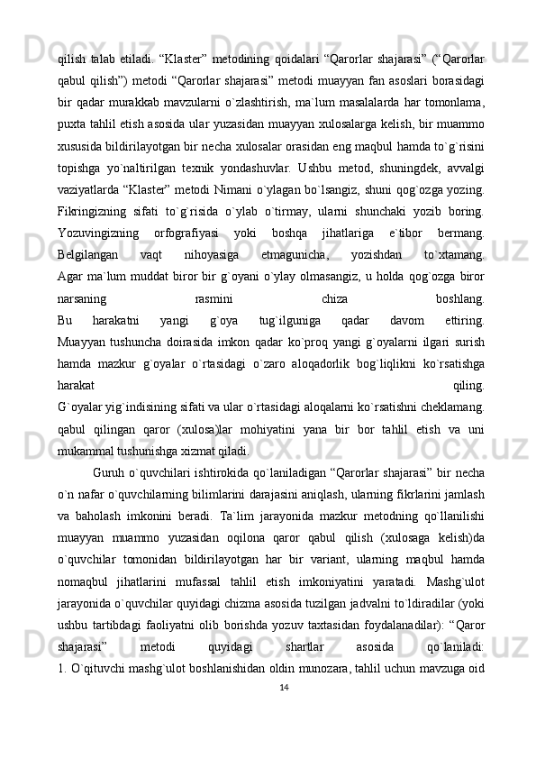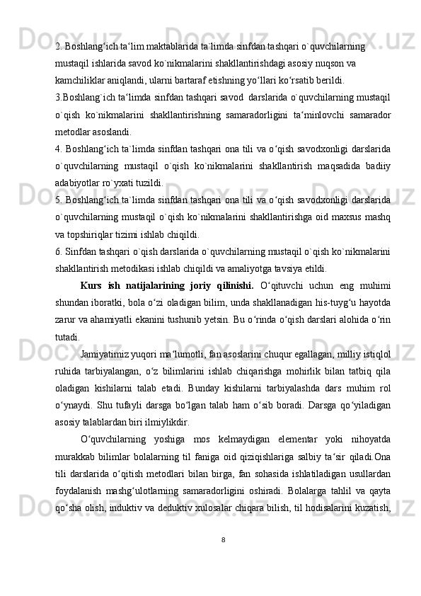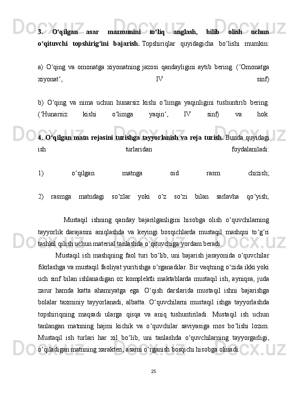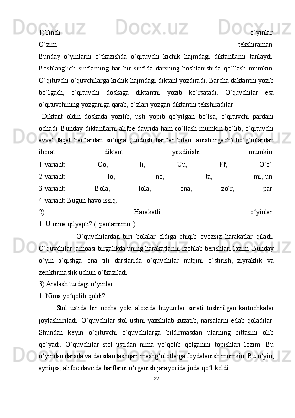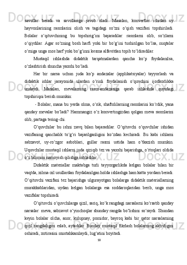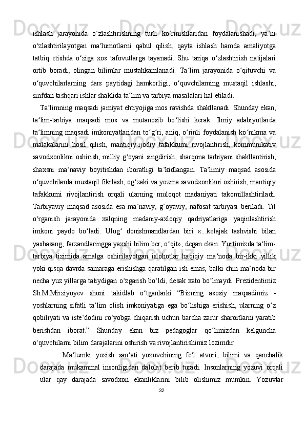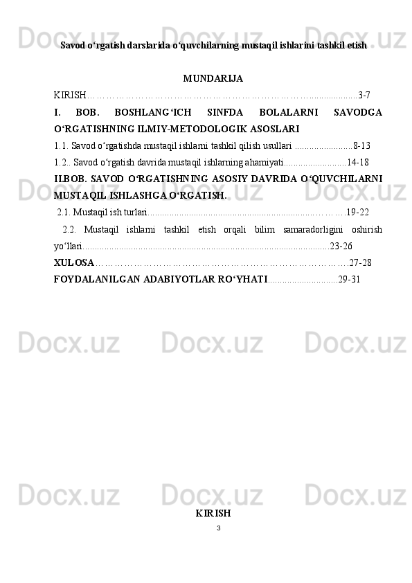 1.2.. Savod oʻrgatish davrida mustaqil ishlarning ahamiyati..........................14-18