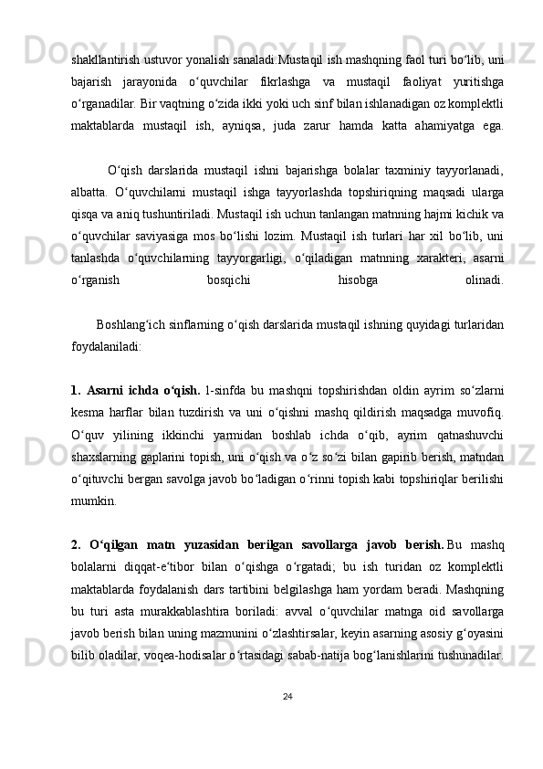 II.BOB. SAVOD OʻRGATISHNING ASOSIY DAVRIDA OʻQUVCHILARNI MUSTAQIL ISHLASHGA OʻRGATISH.