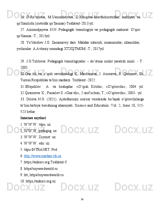 FOYDALANILGAN ADABIYOTLAR ROʻYHATI.............................29-31