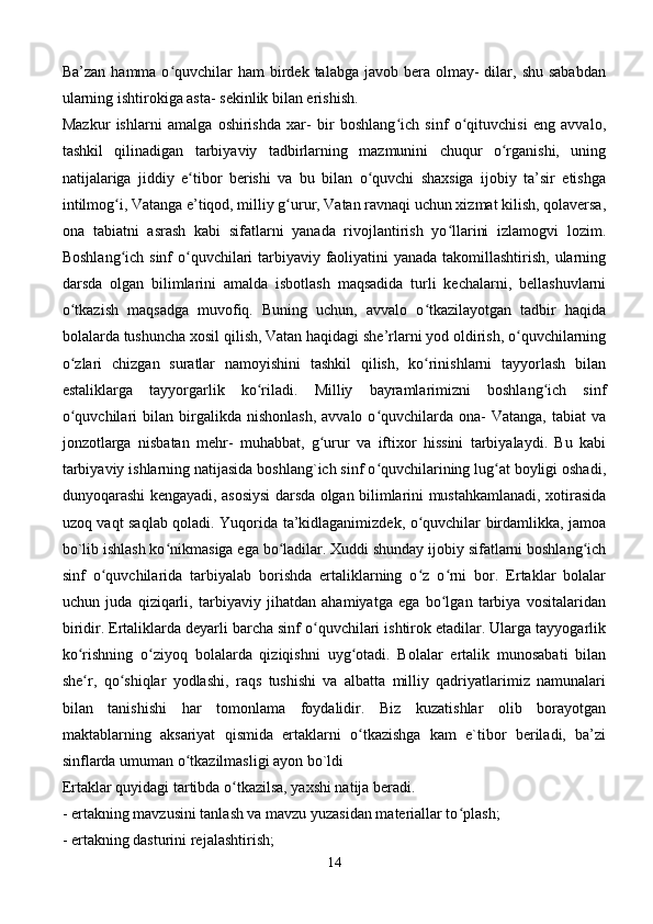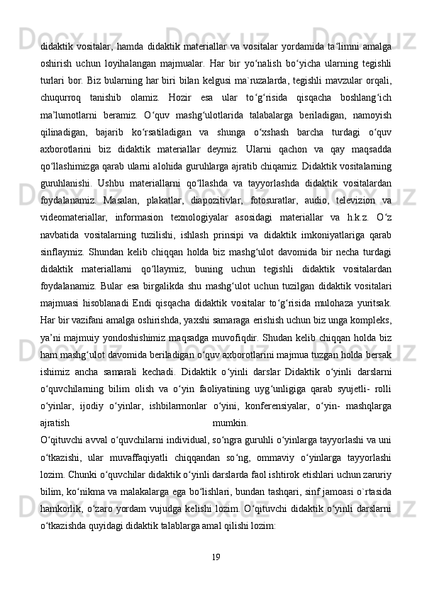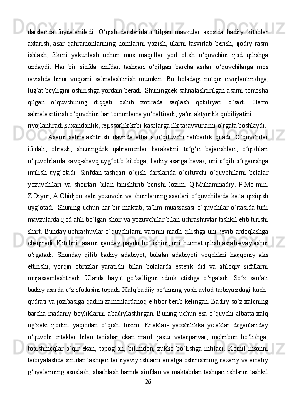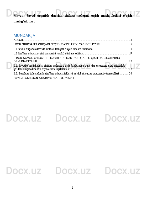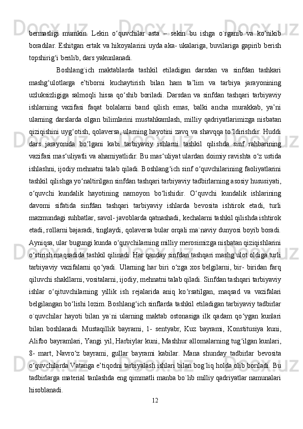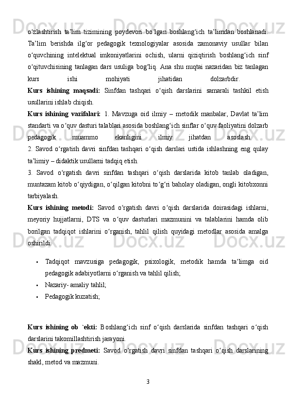 Savod oʻrgatish davrida sinfdan tashqari oʻqish mashgʻulotlari