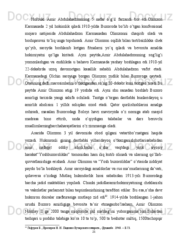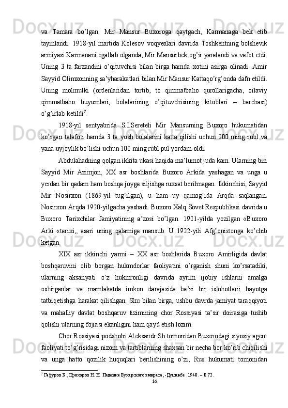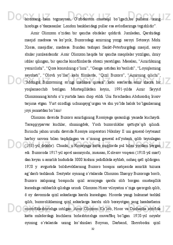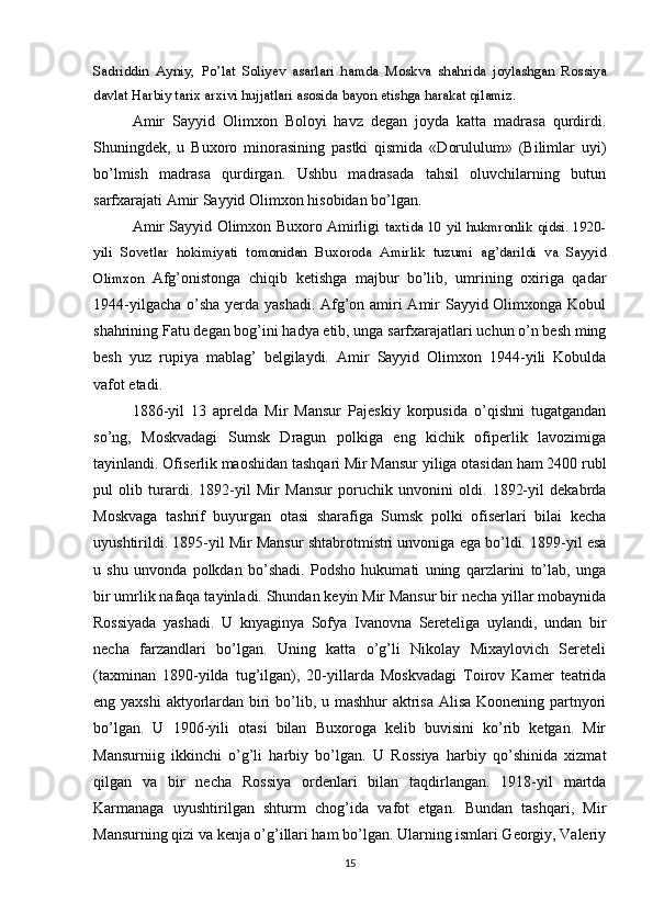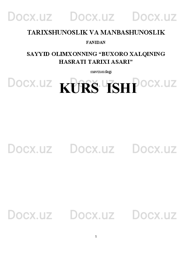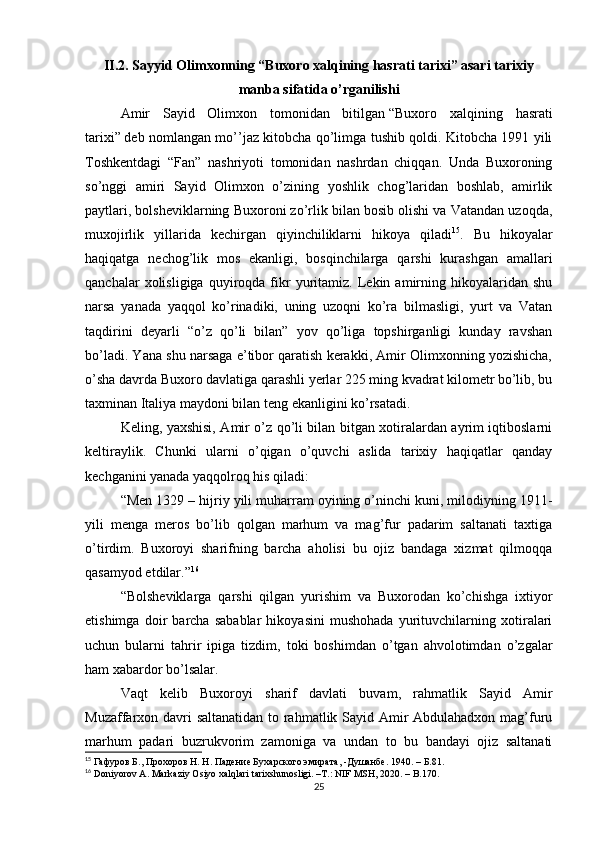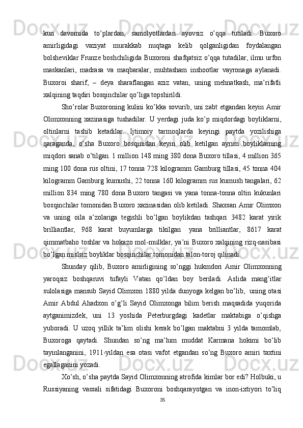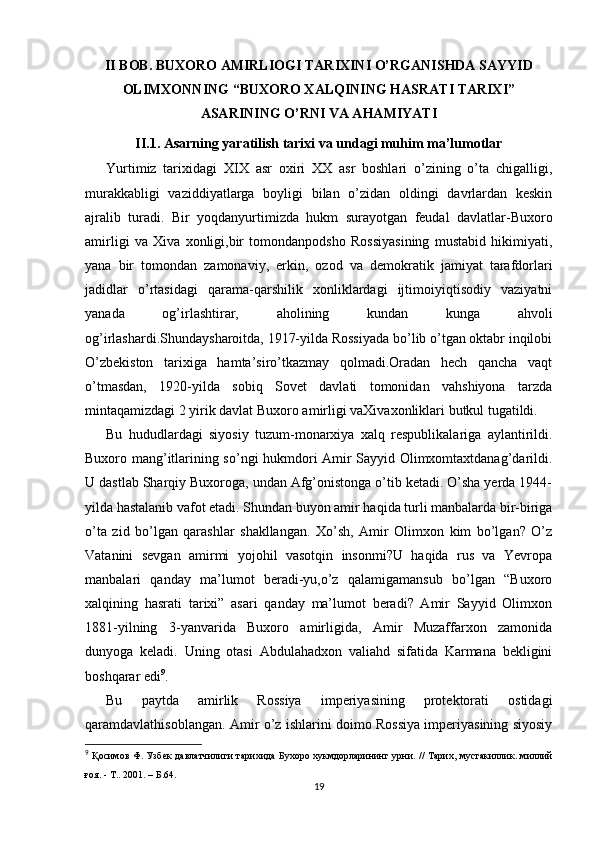 SAYYID OLIMXONNING “BUXORO XALQINING HASRATI TARIXI ASARI”