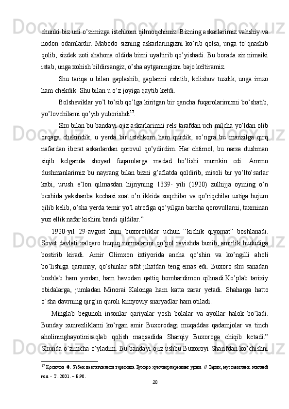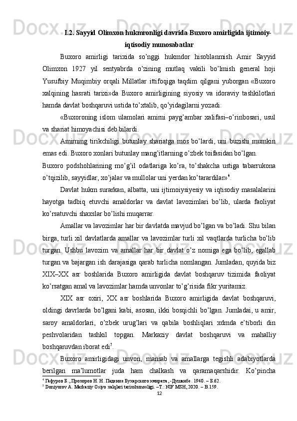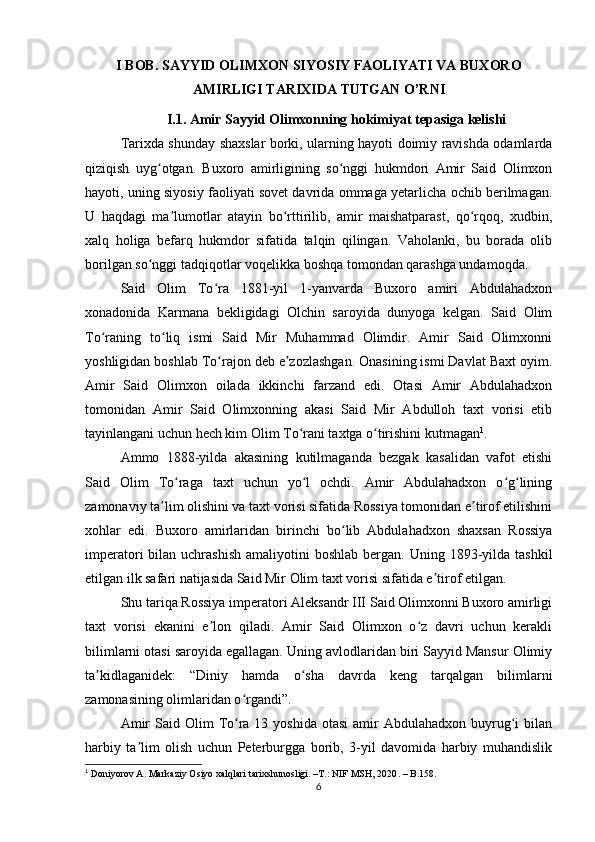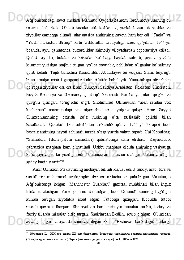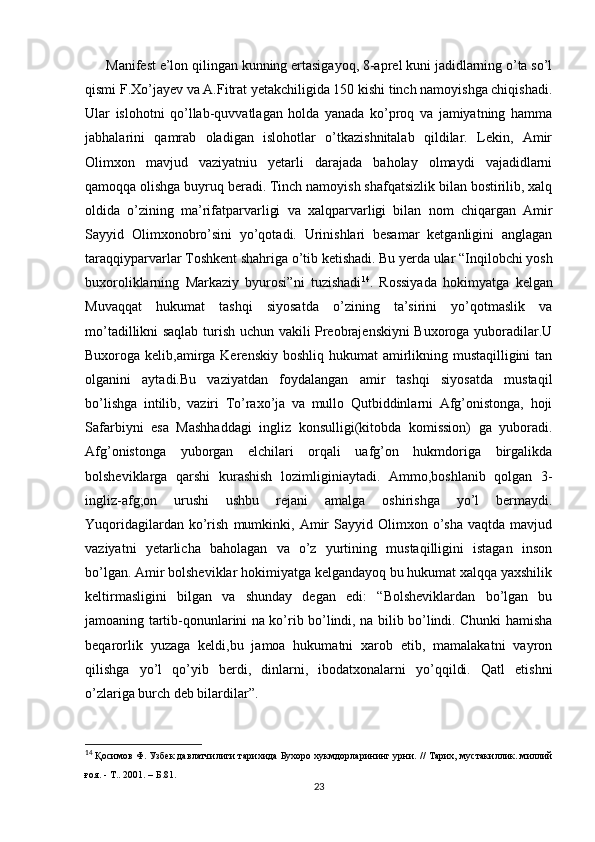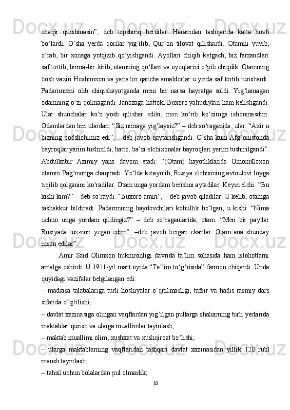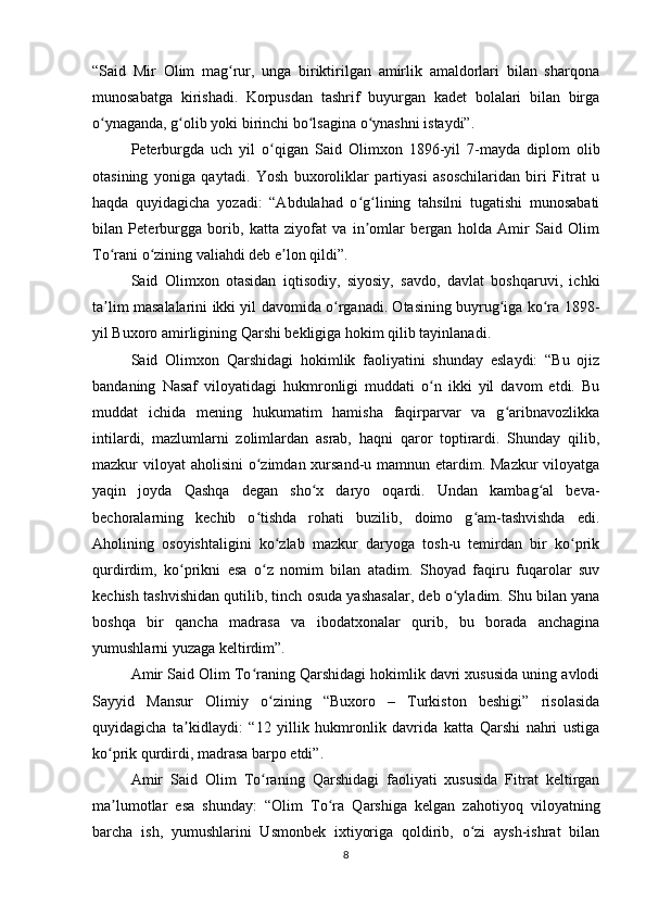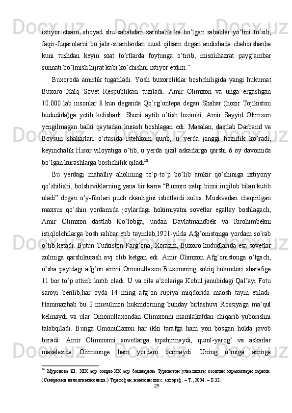 SAYYID OLIMXONNING “BUXORO XALQINING HASRATI TARIXI ASARI”