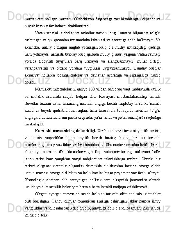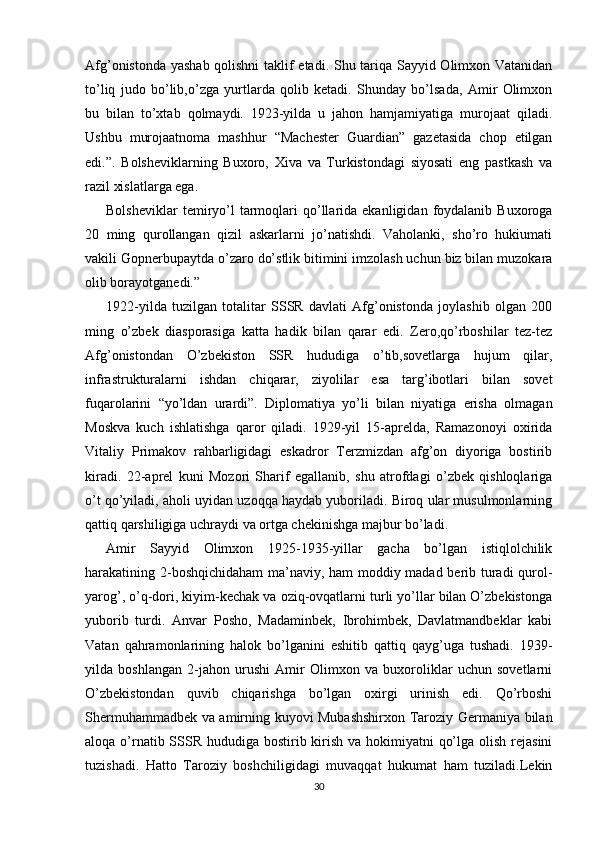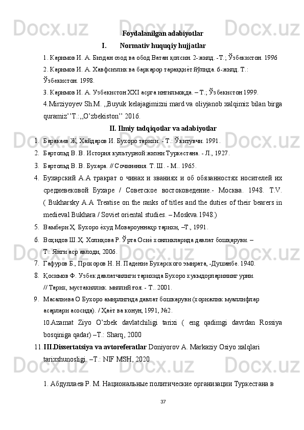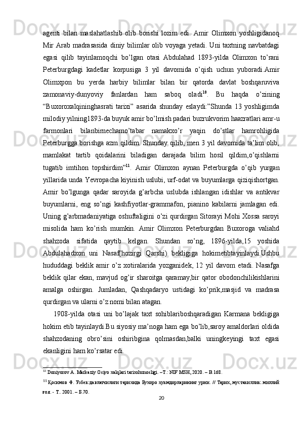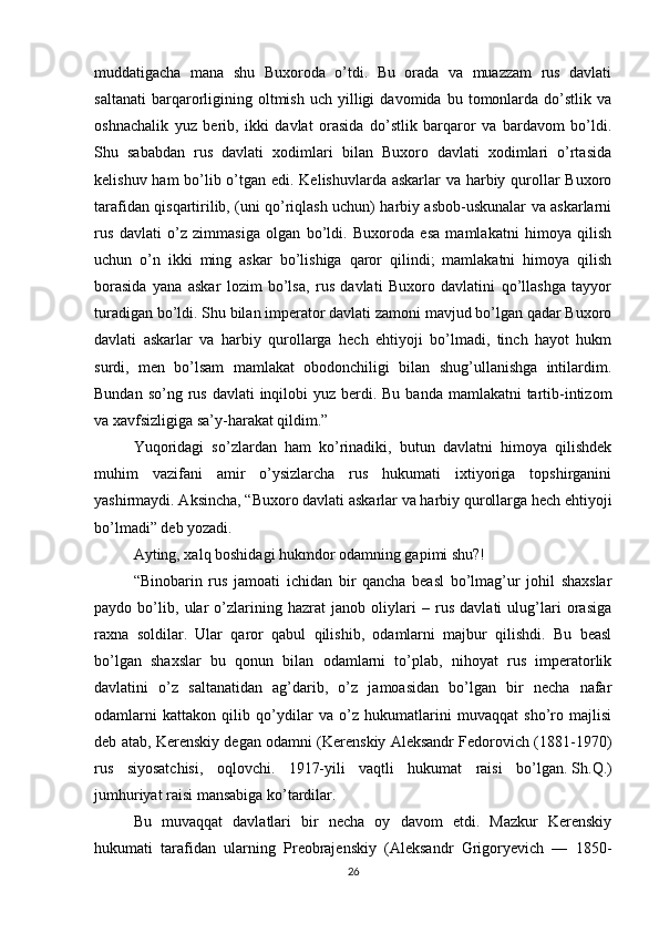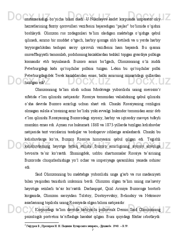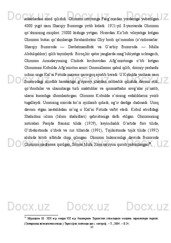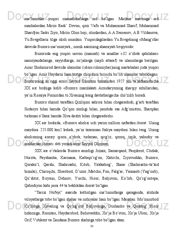SAYYID OLIMXONNING “BUXORO XALQINING HASRATI TARIXI ASARI”