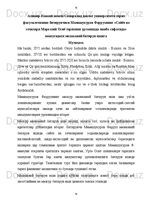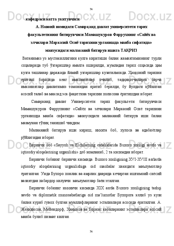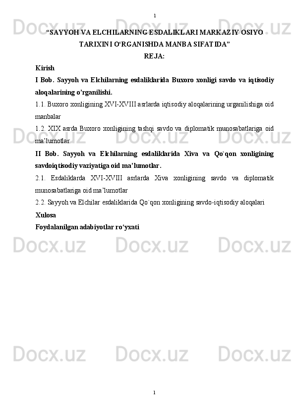 Sayyoh va elchilarning esdaliklari Markaziy Osiyo tarixini o‘rganishda manba sifatida
