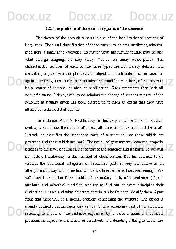 Secondary parts of the sentence