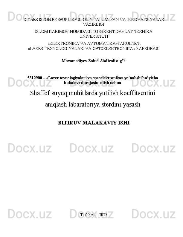 Shaffof suyuq muhitlarda yutilish koeffitsentini aniqlash labaratoriya sterdini yasash