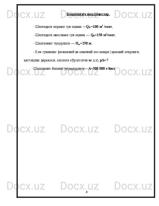 Шахтадаги сувни чиқариб ташлашнинг технологик схемаси. Насос турини танлаш