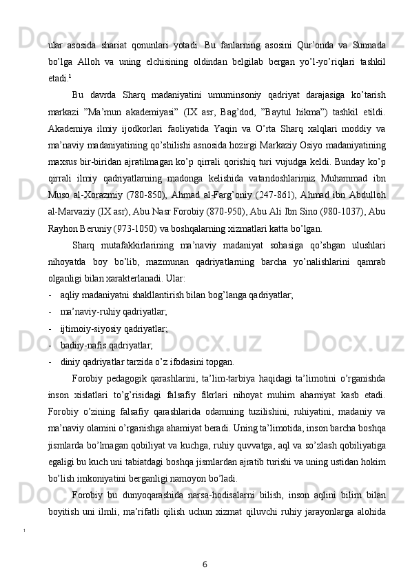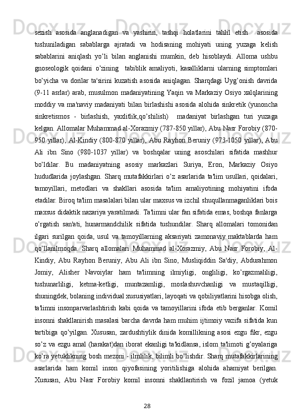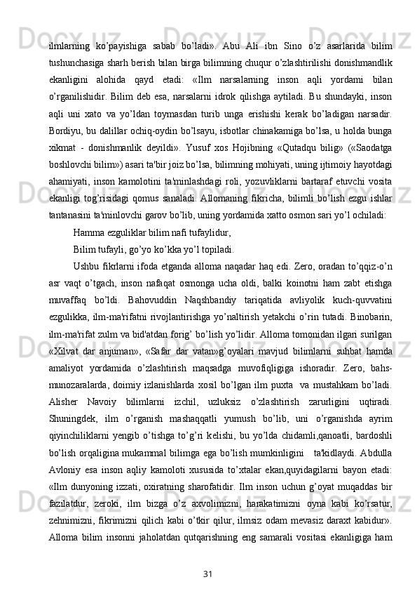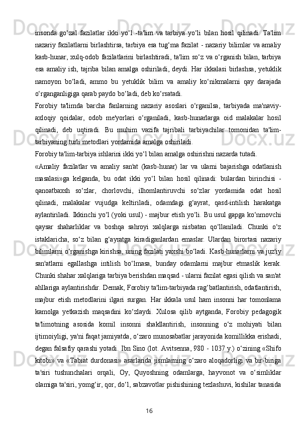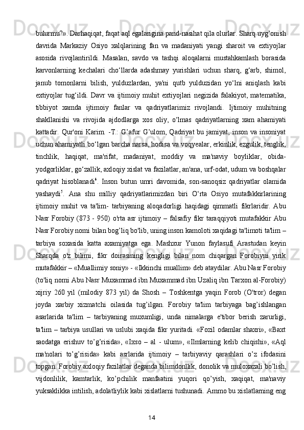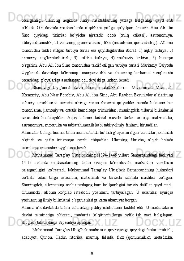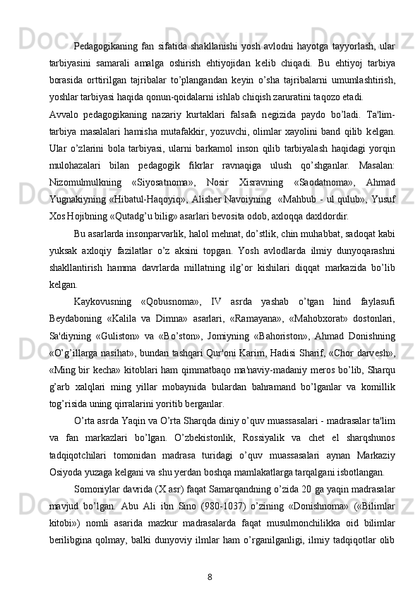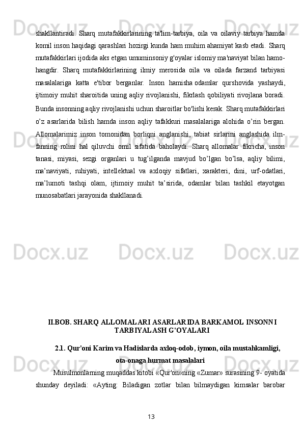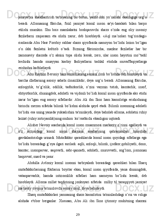 Sharq allomalari asarlarida barkamol insonni tarbiyalash g’oyalari