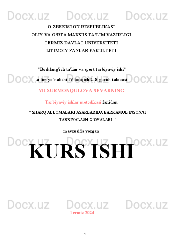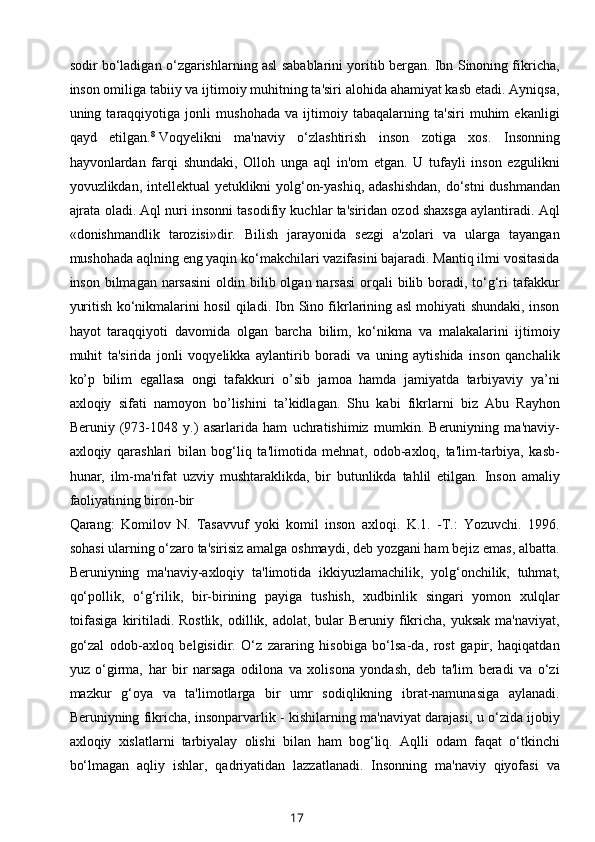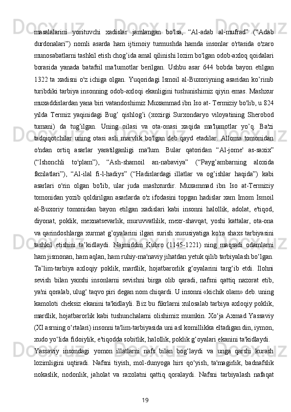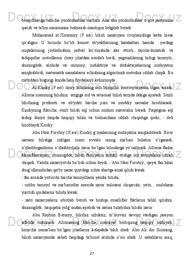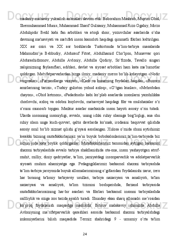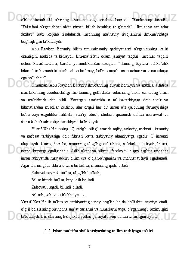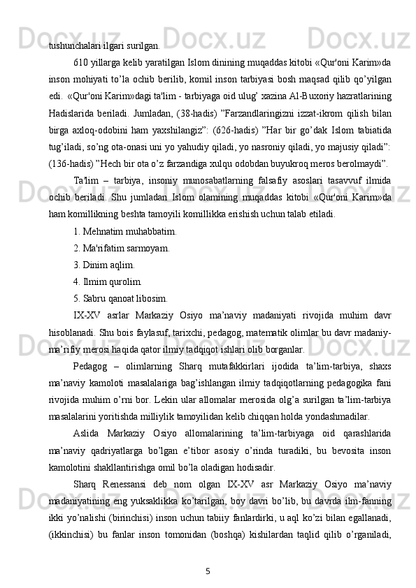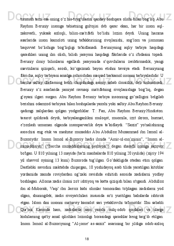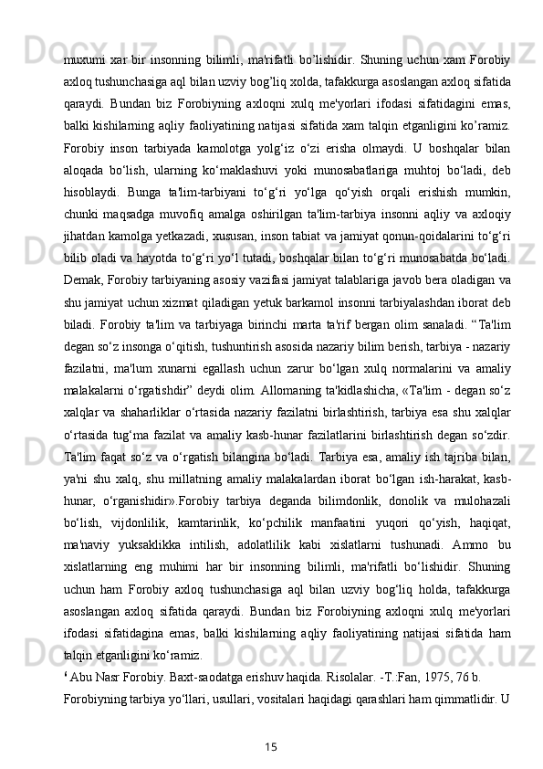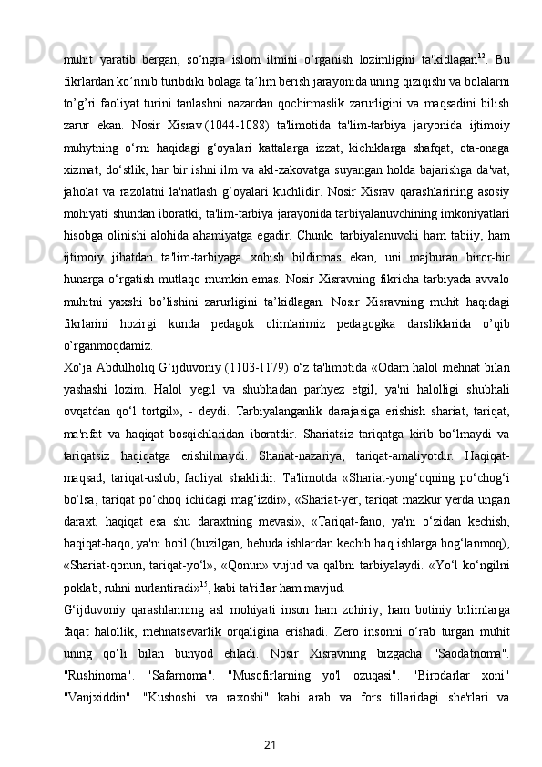 Sharq allomalari asarlarida barkamol insonni tarbiyalash g’oyalari