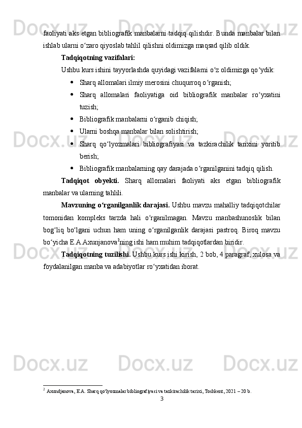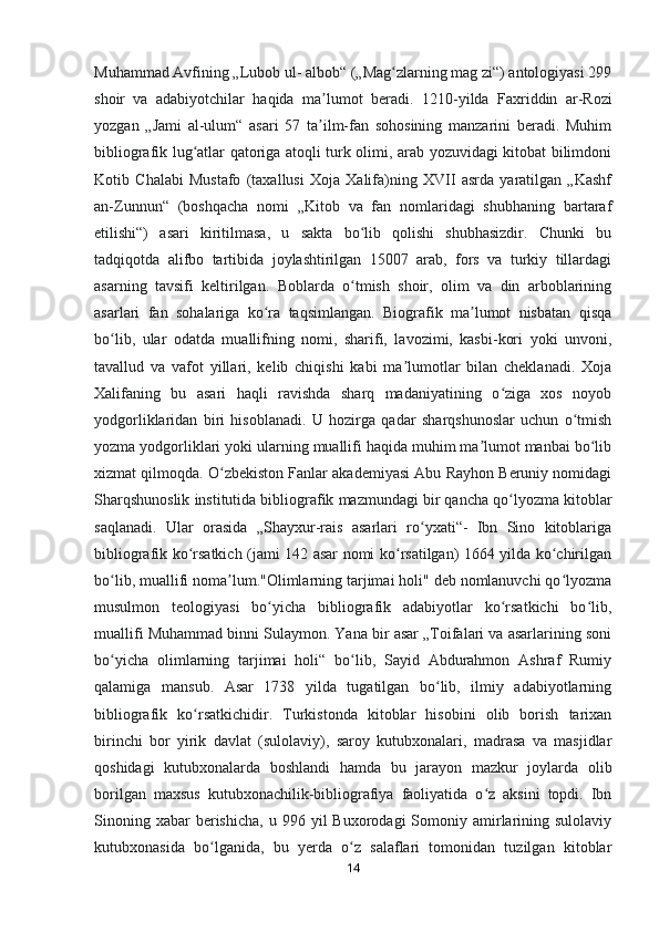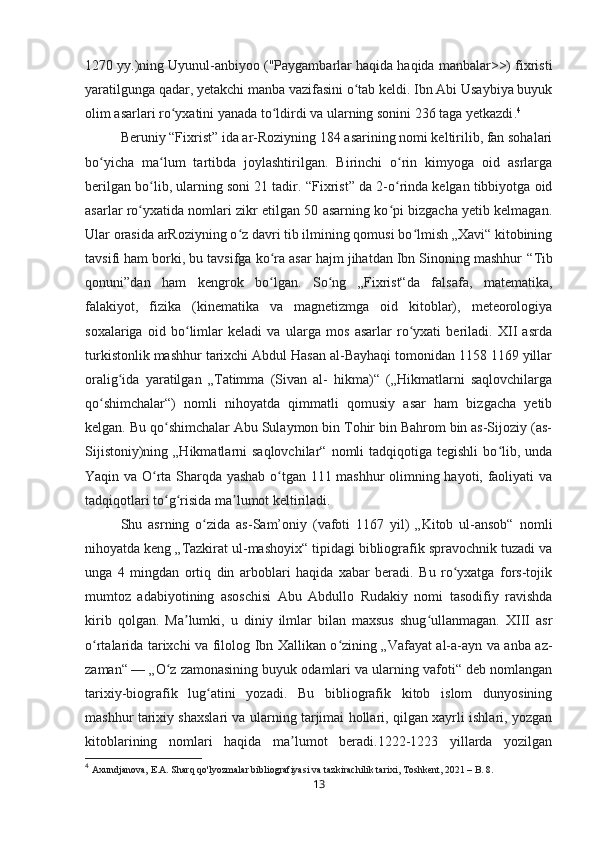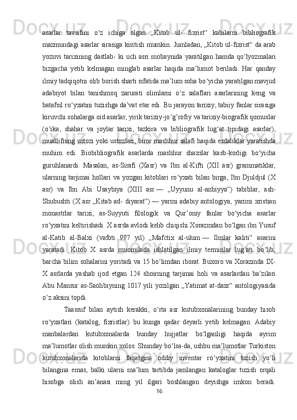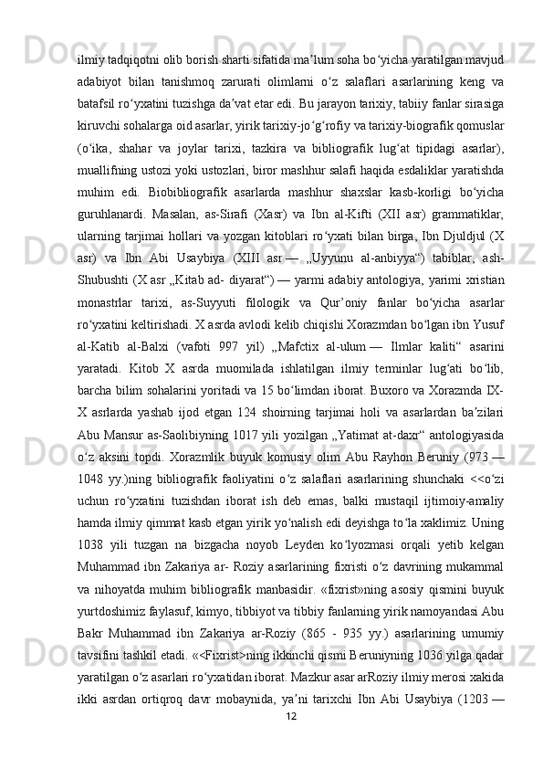 Sharq allomalari faoliyatiga oid bibliografik manbalar va ularning tahlili