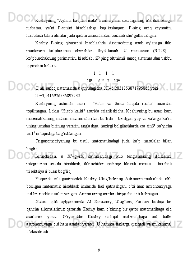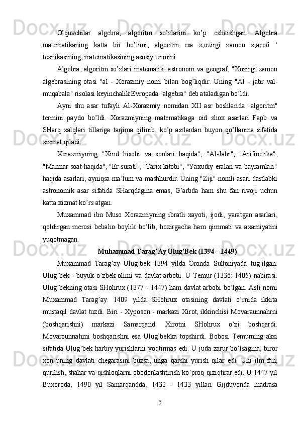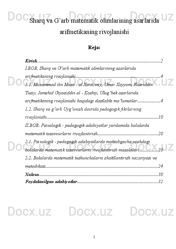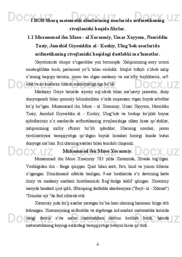 Sharq va G’arb matematik olimlarining asarlarida arifmetikaning rivojlanishi
