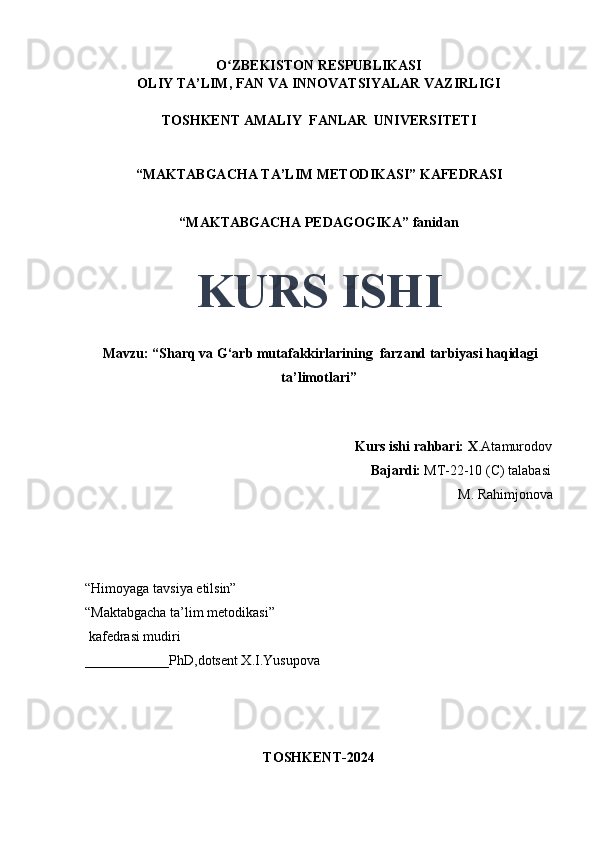 Sharq va G‘arb mutafakkirlarining farzand tarbiyasi haqidagi ta’limotlari