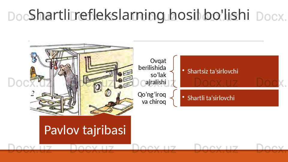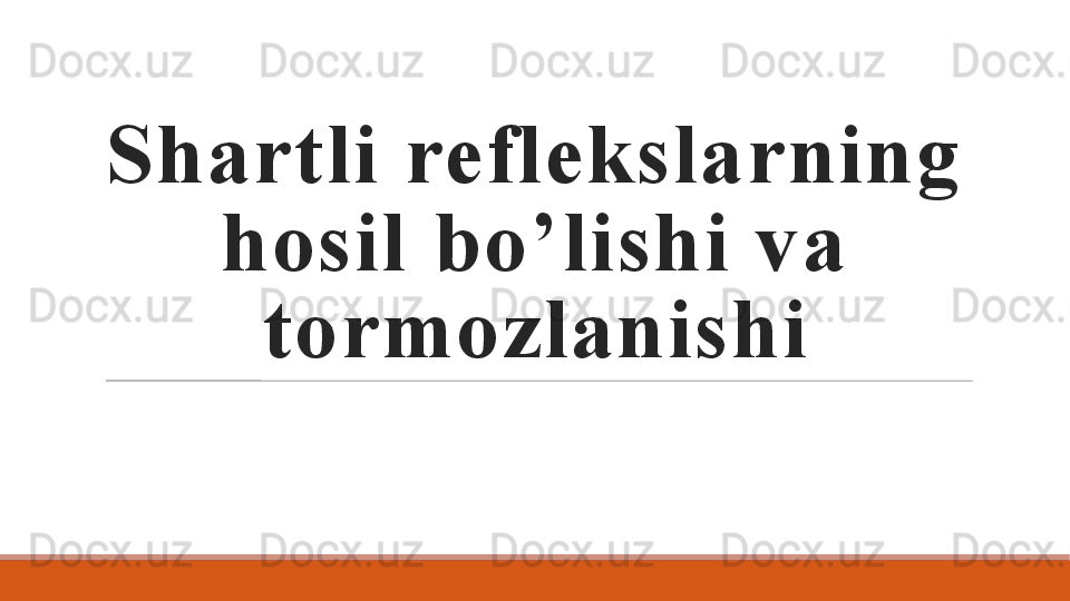 Shartli reflekslarning hosil bo’lishi va tormozlanishi