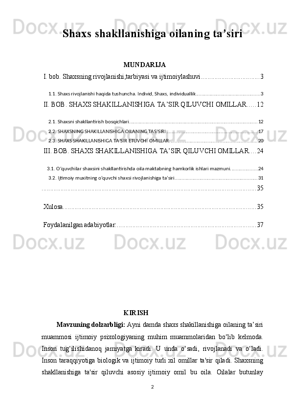 II. BOB. SHAXS SHAKILLANISHIGA TA’SIR QILUVCHI OMILLAR.. 12