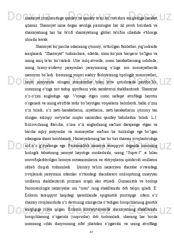 2.3. SHAXS SHAKILLANISHIGA TA’SIR ETUVCHI OMILLAR. 19