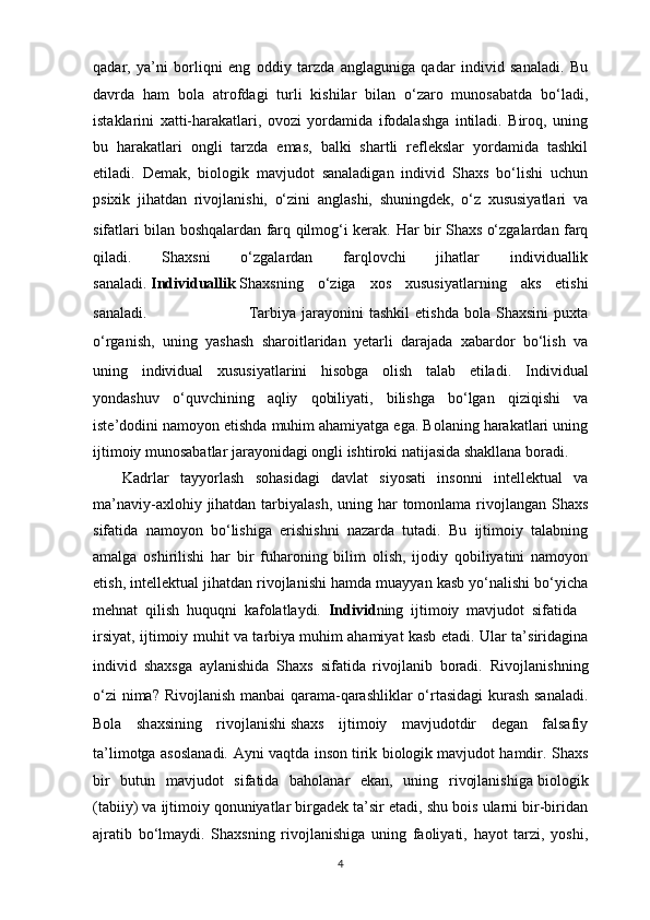 1.1. Shaxs rivojlanishi haqida tushuncha. Individ, Shaxs, individuallik. 4
