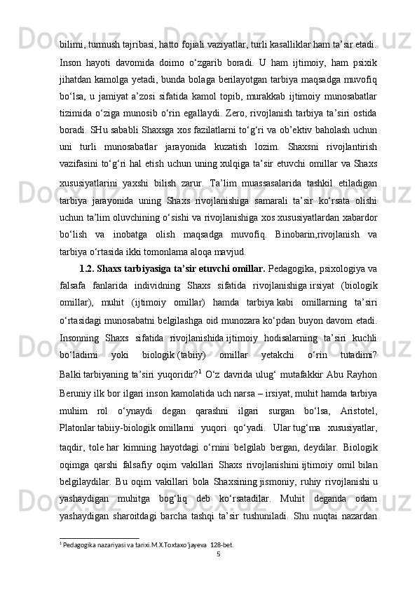 1.2. Shaxs tarbiyasiga ta’sir etuvchi omillar. 5