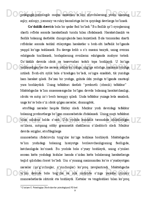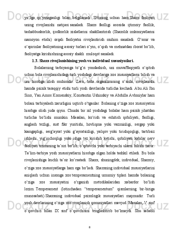 1.3. Shaxs rivojlanishining yosh va individual xususiyatlari. 7
