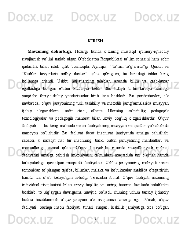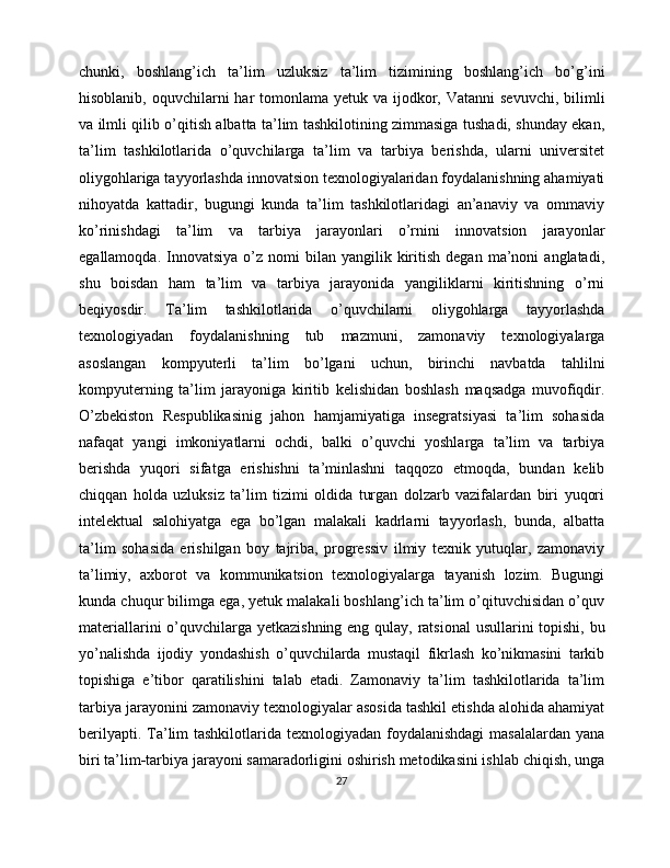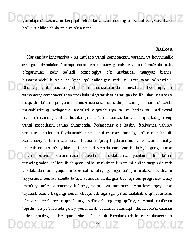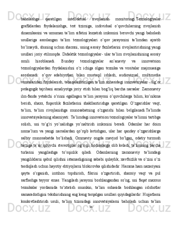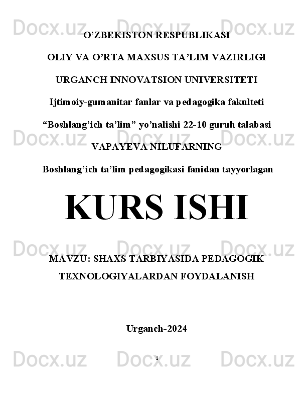 Shaxs tarbiyasida pedagogik texnologiyalardan foydalanish