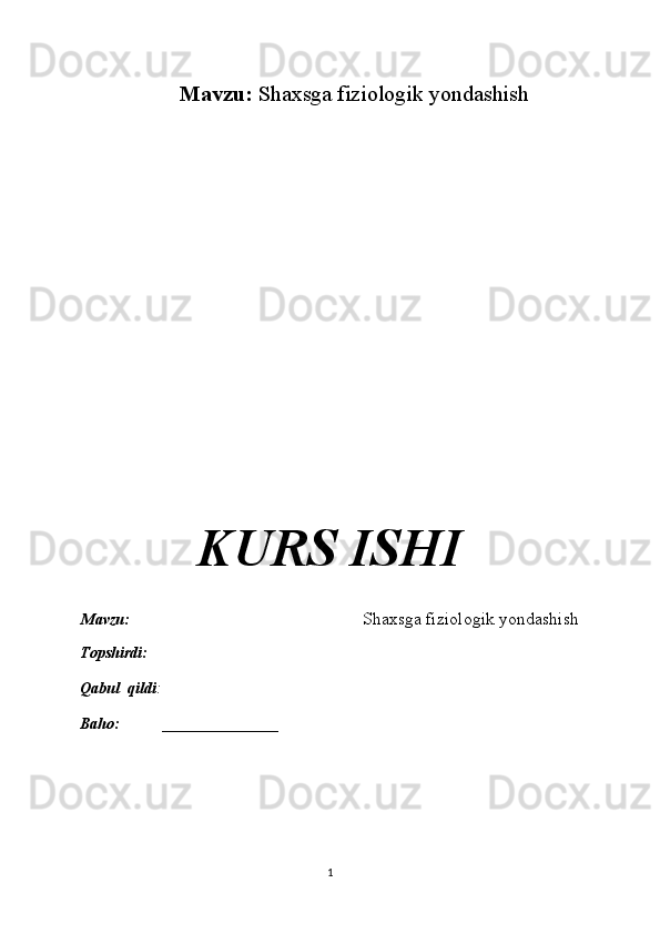 Mavzu:                                                             Shaxsga fiziologik yondashish