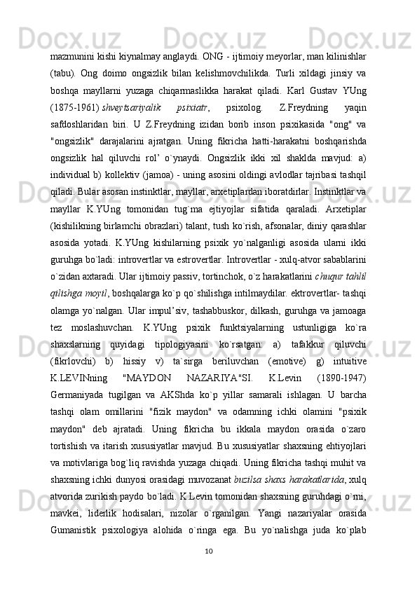 uning   ongli   faoliyat   egasi   ekanligidir.   Ma`lumki   kishi   ongi   faqat   jamiyatda,