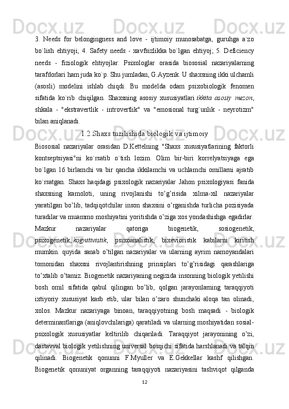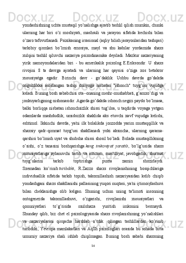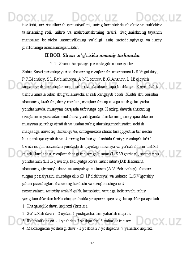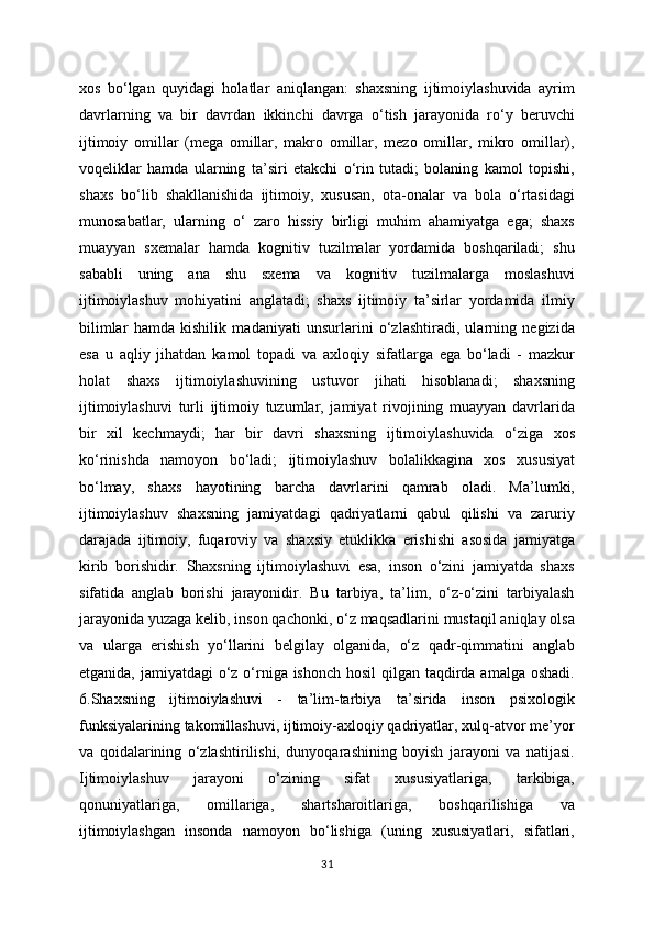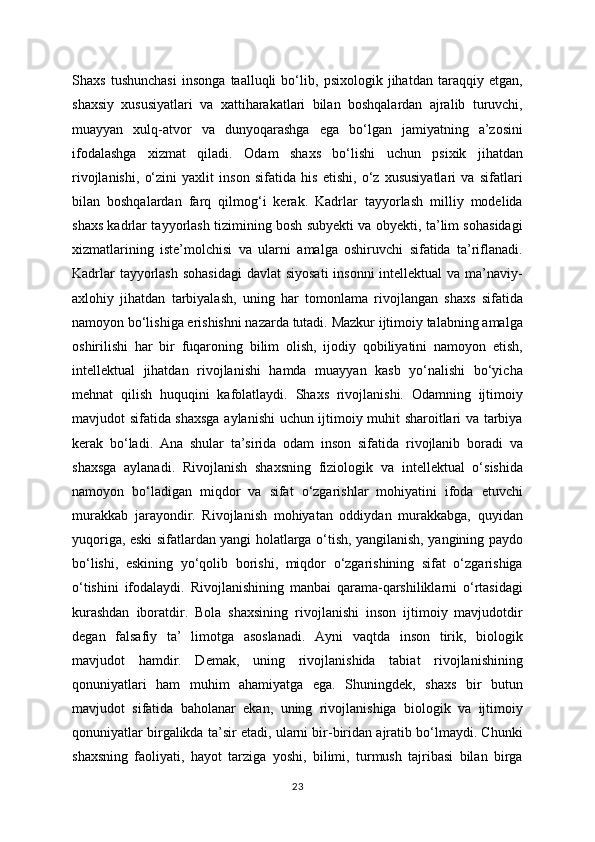rivojlanishga qodir, degan xulosani  chiqarish mumkin. 3. Shaxs shakllanishiga