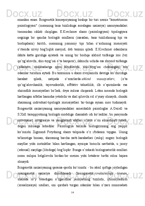 sosiogenetik   omillarning   qimmatini   kamsitmaydi ,   balki   psixik   jarayonlar
