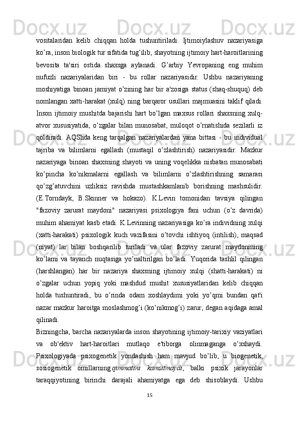 (harshlangan)   har   bir   nazariya   shaxsning   ijtimoiy   xulqi   (shatti-harakati)   ni