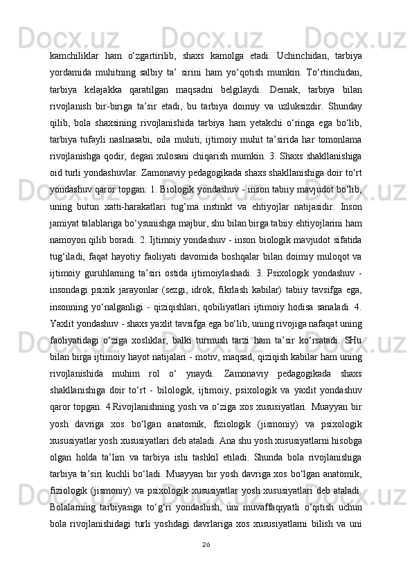 tarbiya ta’siri kuchli bo‘ladi. Muayyan bir yosh davriga xos bo‘lgan anatomik,