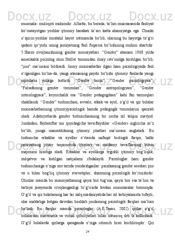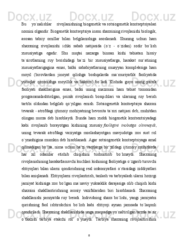 rivojlanishida   muhim   rol   o‘   ynaydi.   Zamonaviy   pedagogikada   shaxs