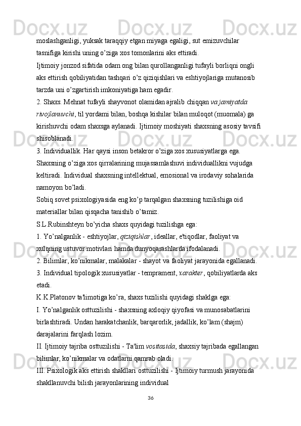 o`zlashtirishda   shakllanadi.   Binobarin   shaxs   ham   faqat   jamiyatdagina   shaxsga