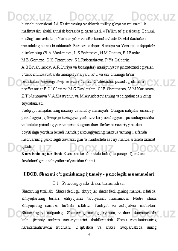 g’oyalari   kurs   ishimizning   metodologik   asosi   bo’lib   hizmat   qiladi.