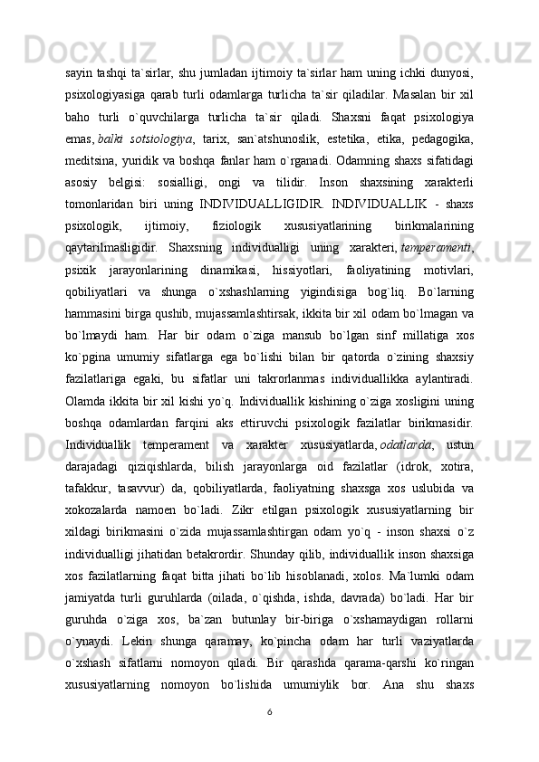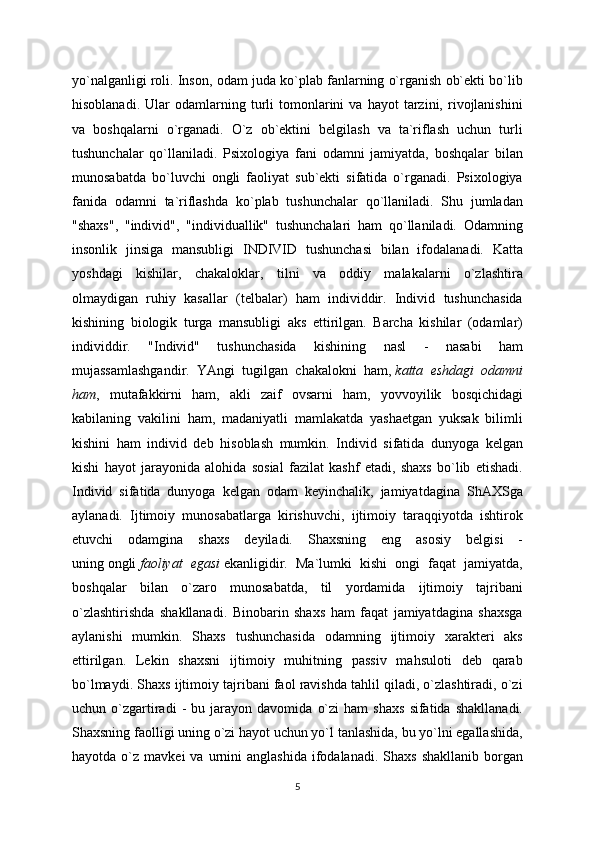 "shaxs",   "individ",   "individuallik"   tushunchalari   ham   qo`llaniladi.   Odamning