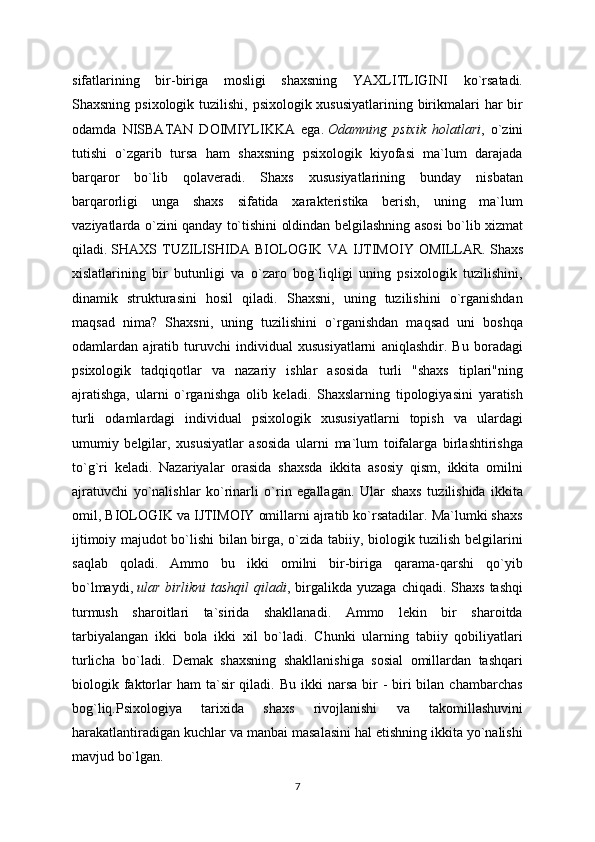 ma’nosini   anglatib,   shaxsning   individual   psixologik   xususiyatlari   majmuidir.