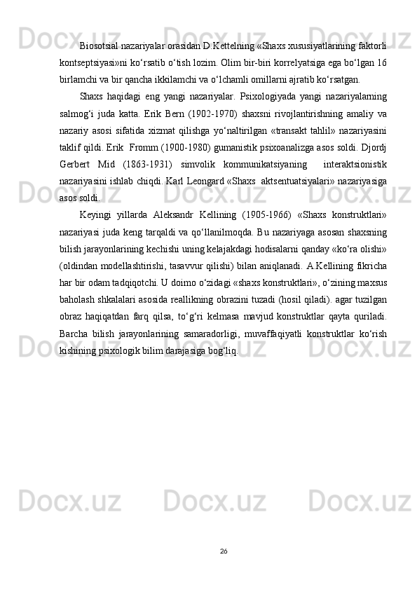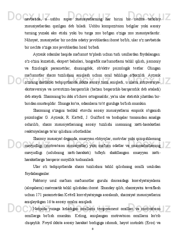 Shaxsni o'rganishda faktorli yondashuvni nazariy tahlili
