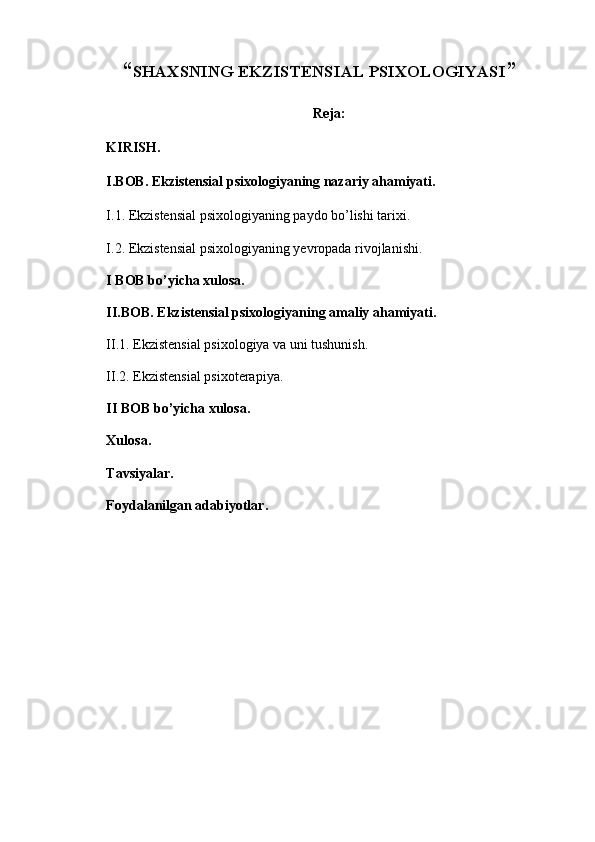 I.1. Ekzistensial psixologiyaning paydo bo’lishi tarixi.