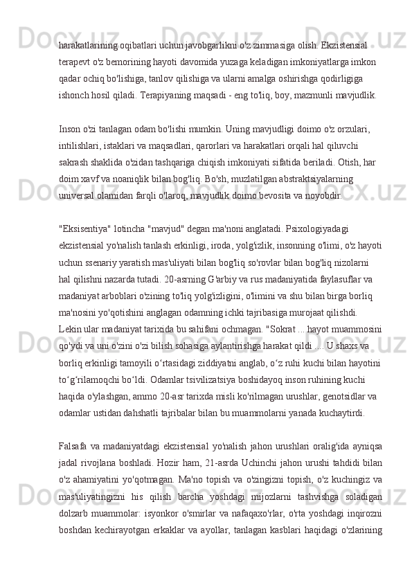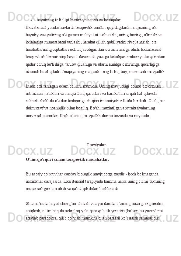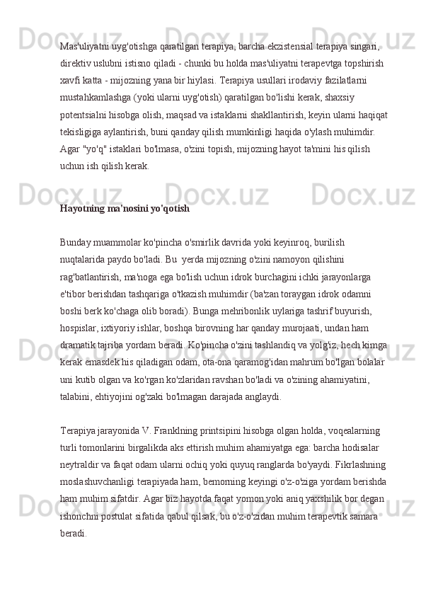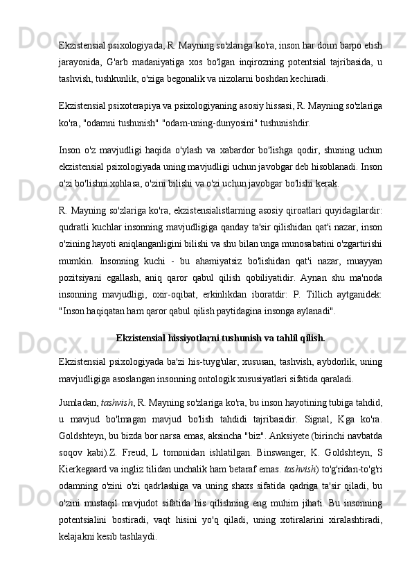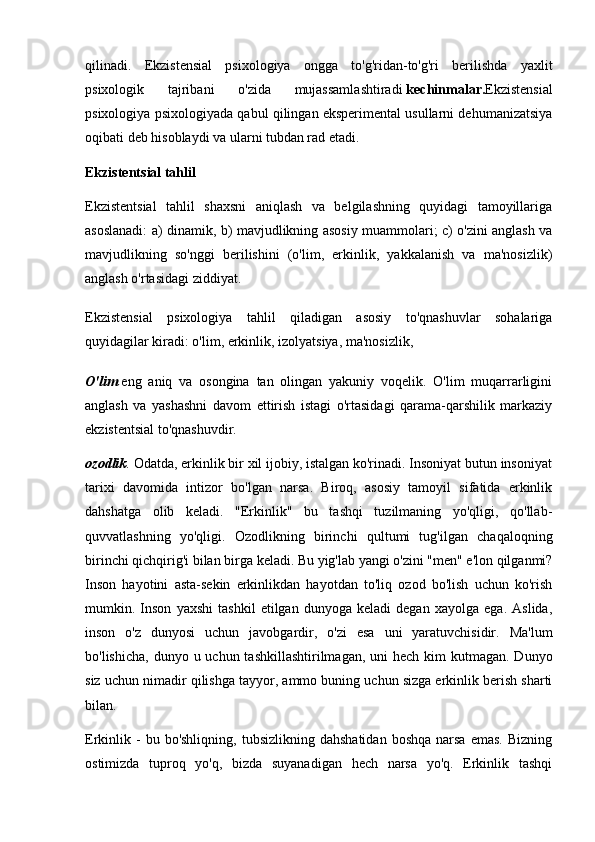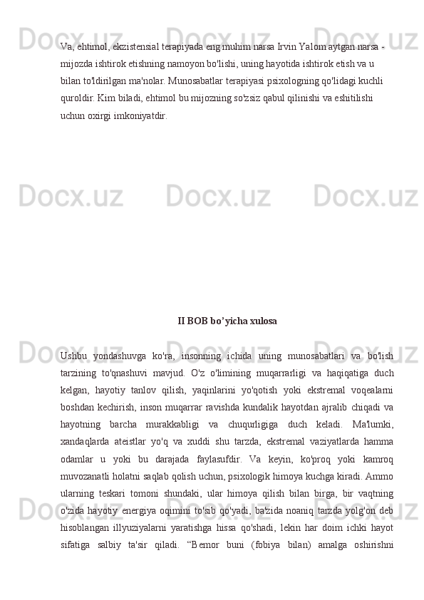II.BOB. Ekzistensial psixologiyaning amaliy ahamiyati.