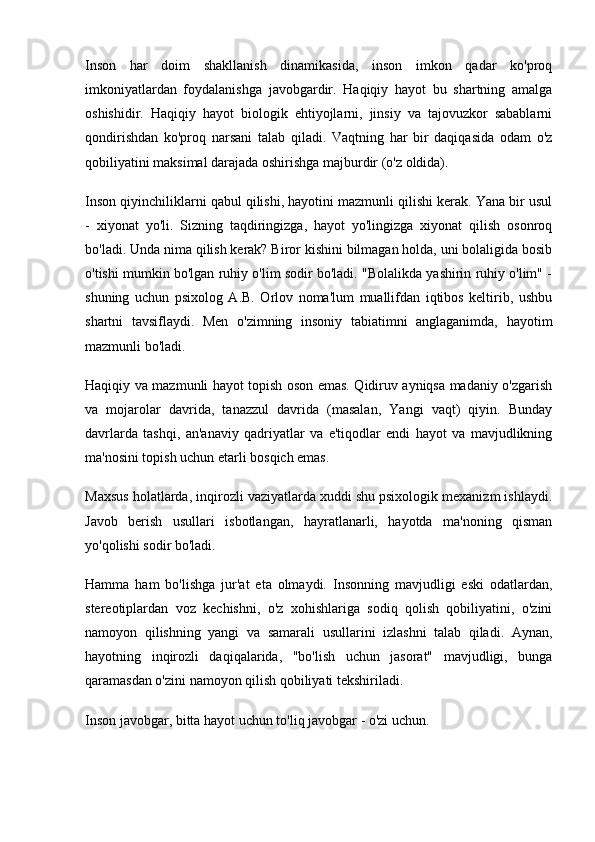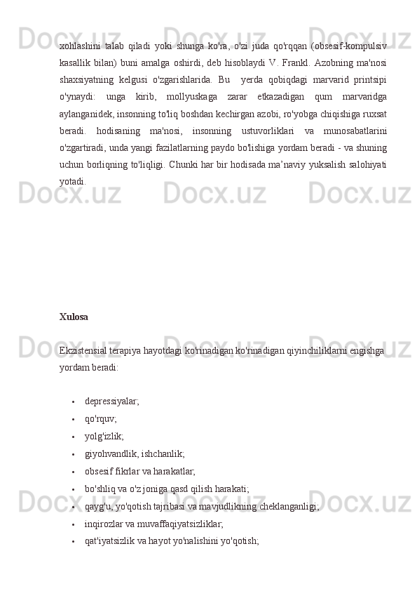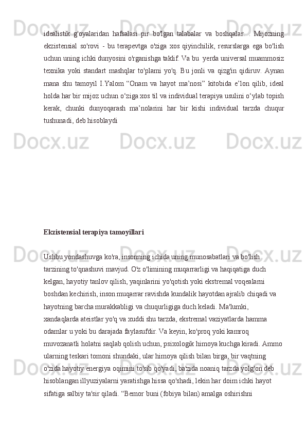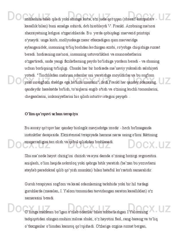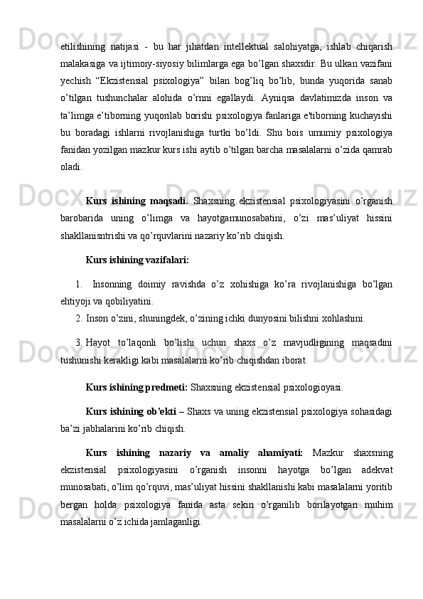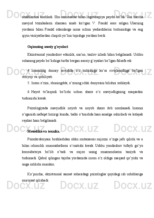 II.BOB. Ekzistensial psixologiyaning amaliy ahamiyati.