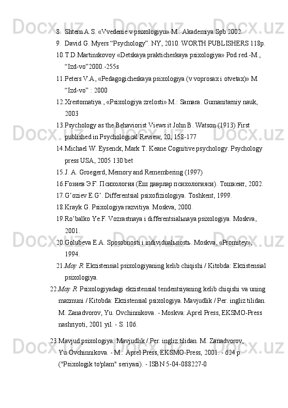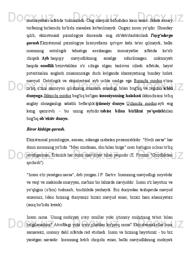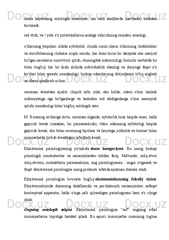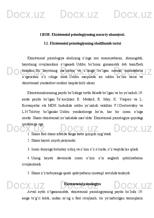 I.BOB. Ekzistensial psixologiyaning nazariy ahamiyati.