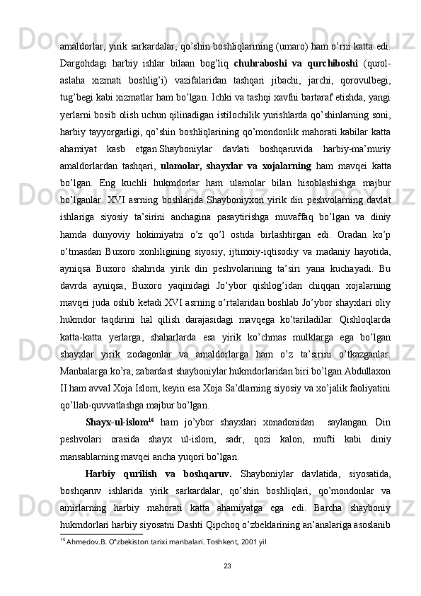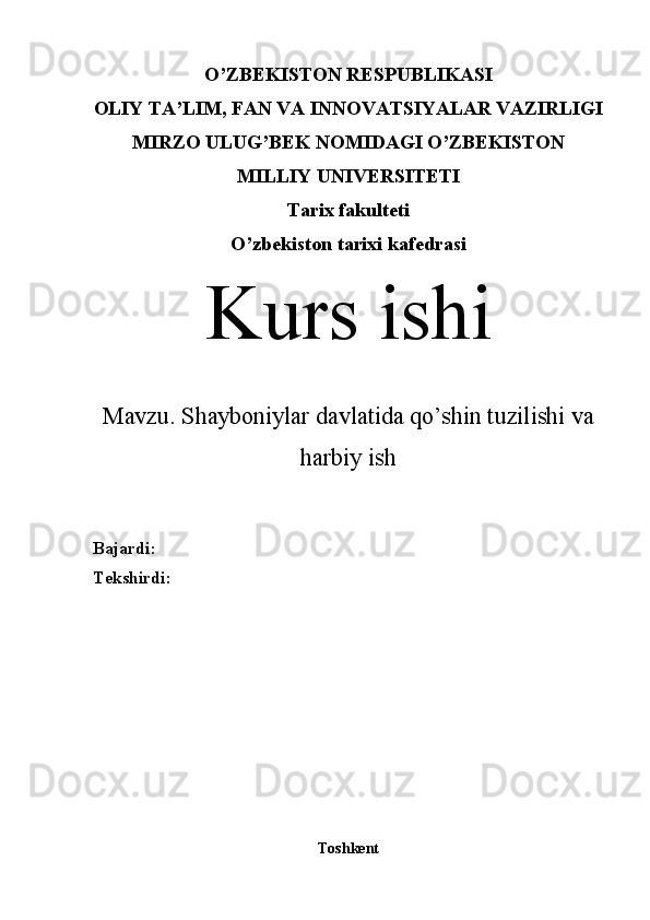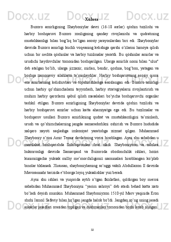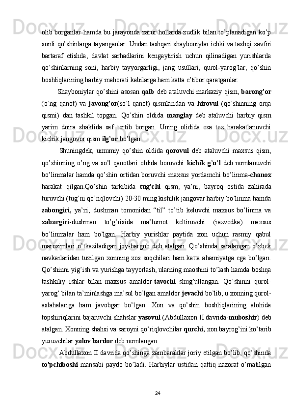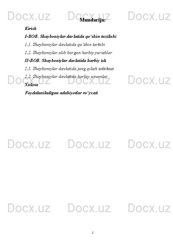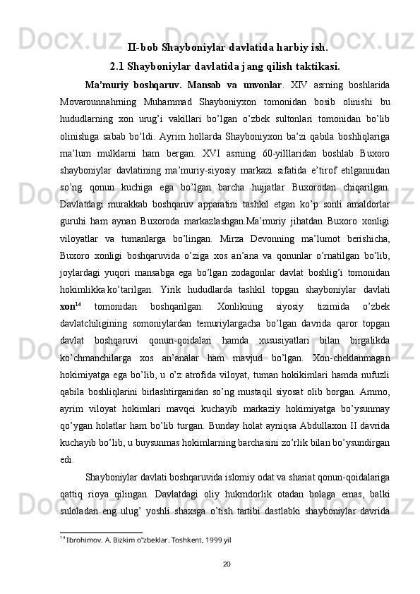 Shayboniylar davlatida qo’shin tuzilishi va harbiy ish